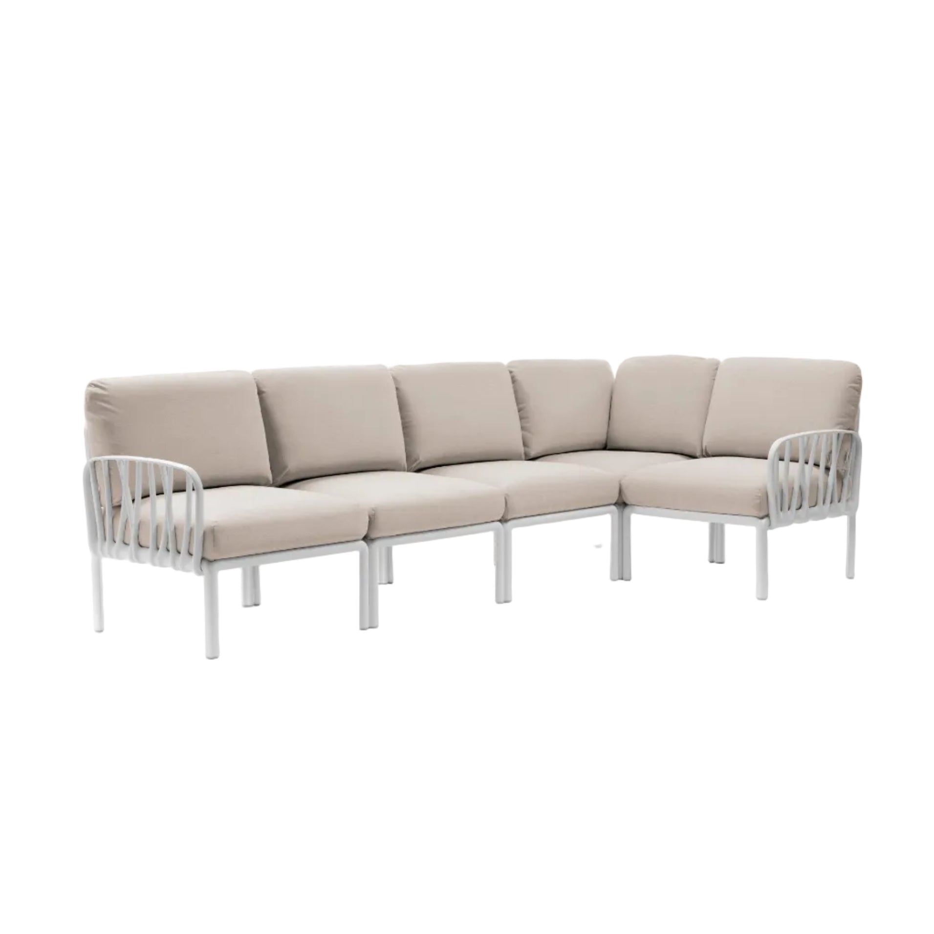 Modularer Außen-Ecksofa KOMODO 5 beige Sunbrella® mit weißem Gestell