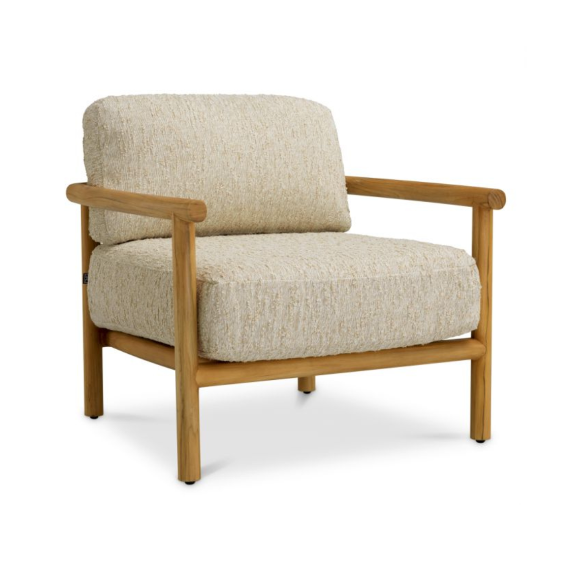 Ein Stuhl im Ciselia Beige Szenil Stoff mit einer schwarzen Basis