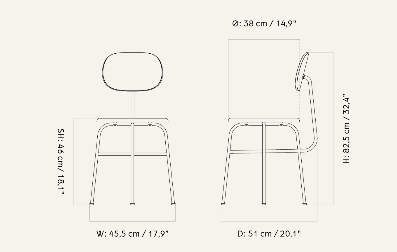 Stuhl Afteroom Dining Chair Plus gepolstert ist eine elegante und komfortable Variante des ikonischen Designs des Afteroom Studios. Mit einem gepolsterten Sitz und Rückenlehne, die in einer breiten Palette von Stoffen erhältlich sind, bringt der Stuhl einen Hauch von Luxus und Weichheit in Ihr Zuhause, während er die minimalistische Form beibehält, die für die gesamte Kollektion charakteristisch ist. Der einfache, röhrenförmige Rahmen aus pulverbeschichtetem Stahl verleiht ihm Stabilität und Langlebigkeit, während die größere, abgerundete Rückenlehne eine angemessene Lendenstütze beim längeren Sitzen bietet.
