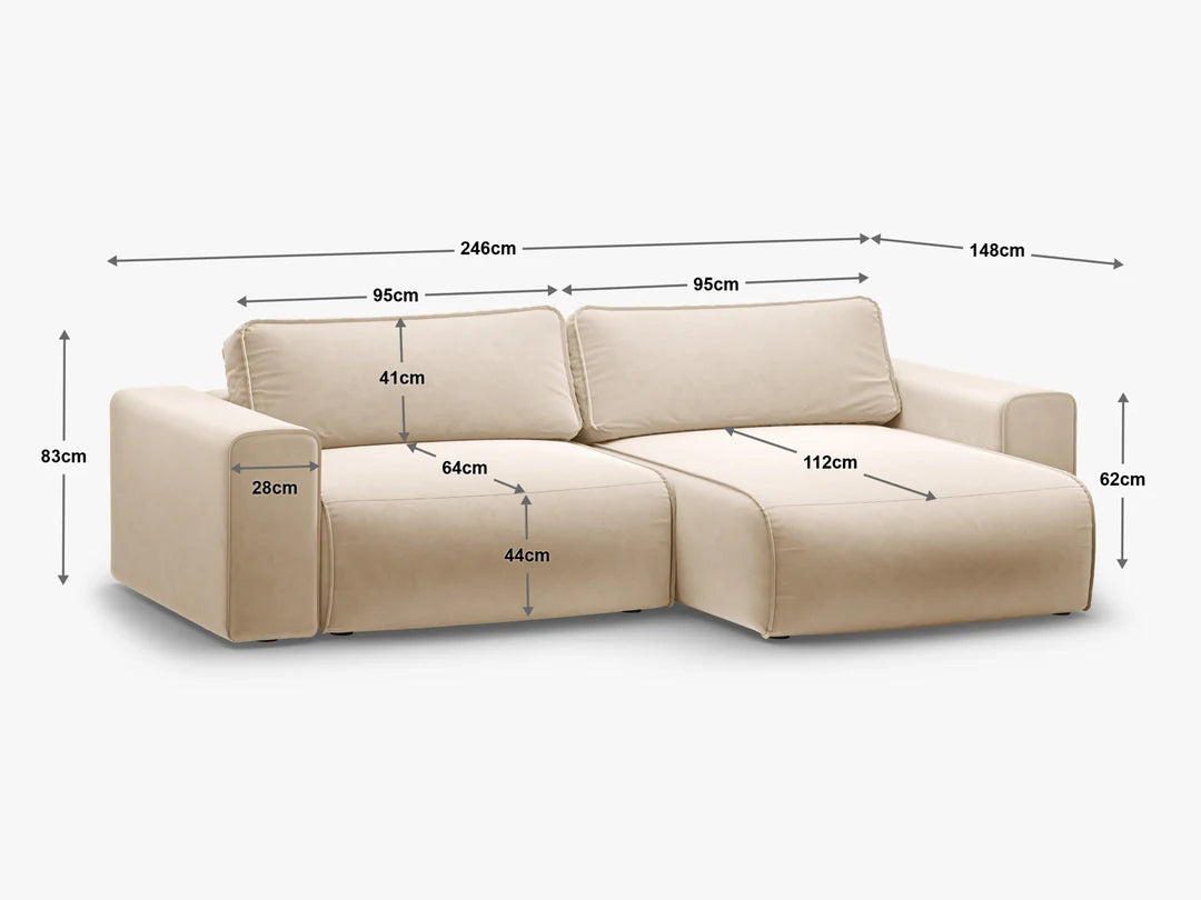 Ecksofa Victor verfügt über eine Schlaffunktion, mit der Sie es schnell und einfach in einen zusätzlichen Schlafplatz für Gäste verwandeln können. Der Bettkasten unter dem Sitz erleichtert die Ordnung und ermöglicht eine bequeme Aufbewahrung von Textilien. Maßgefertigt in Europa mit Liebe zum Detail, ist es so konzipiert, dass es Ihnen über Jahre hinweg dient.