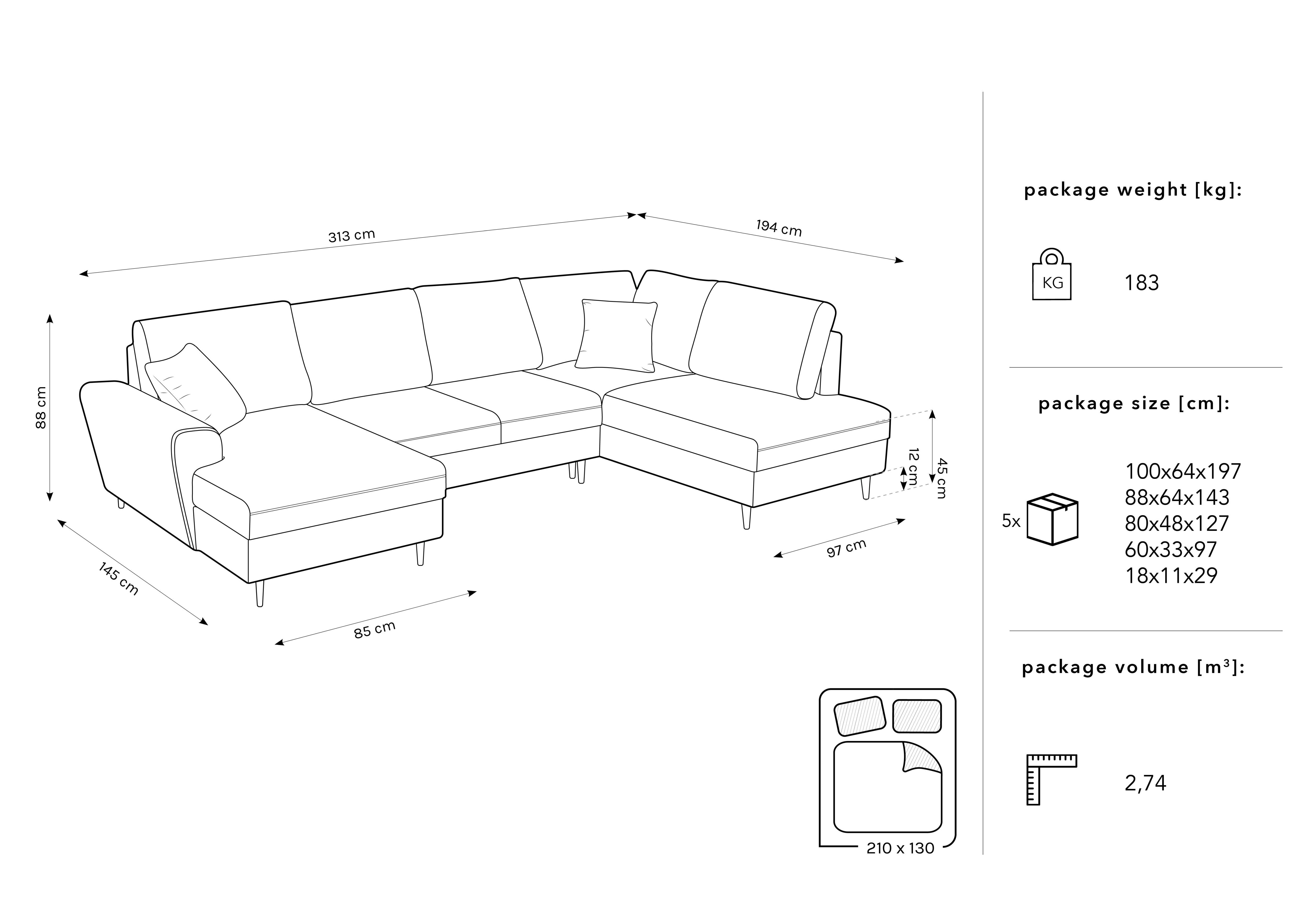 Rechte Ecke Samt Panorama mit einer Kyoto -Schlaffunktion mit einer goldenen Basis Kyoto Dark Bone