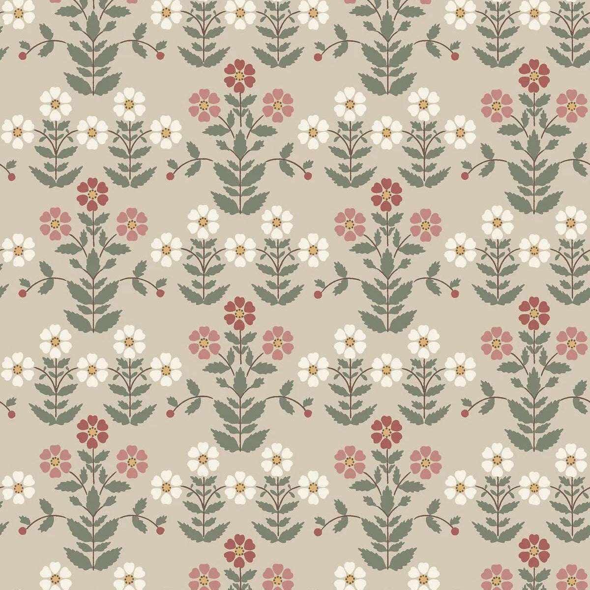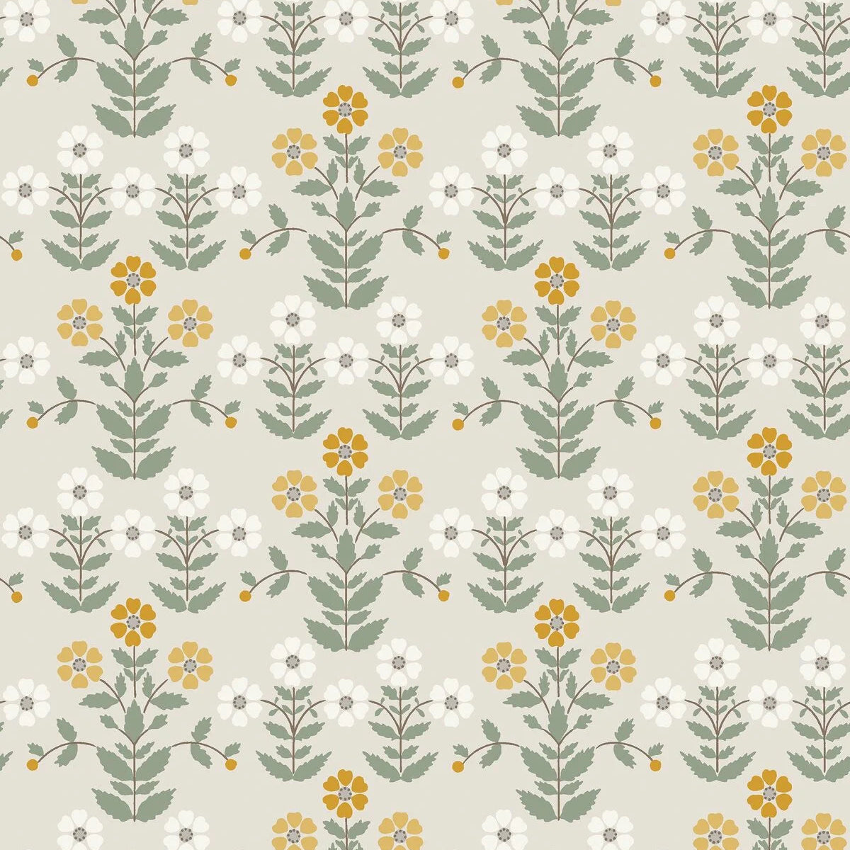 Tapete mit pflanzlichem Blumenmotiv SNODROPPE beige mit grün