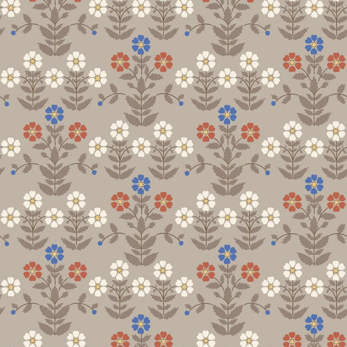 Tapete mit pflanzlichem Blumenmotiv ELISE rot mit blau