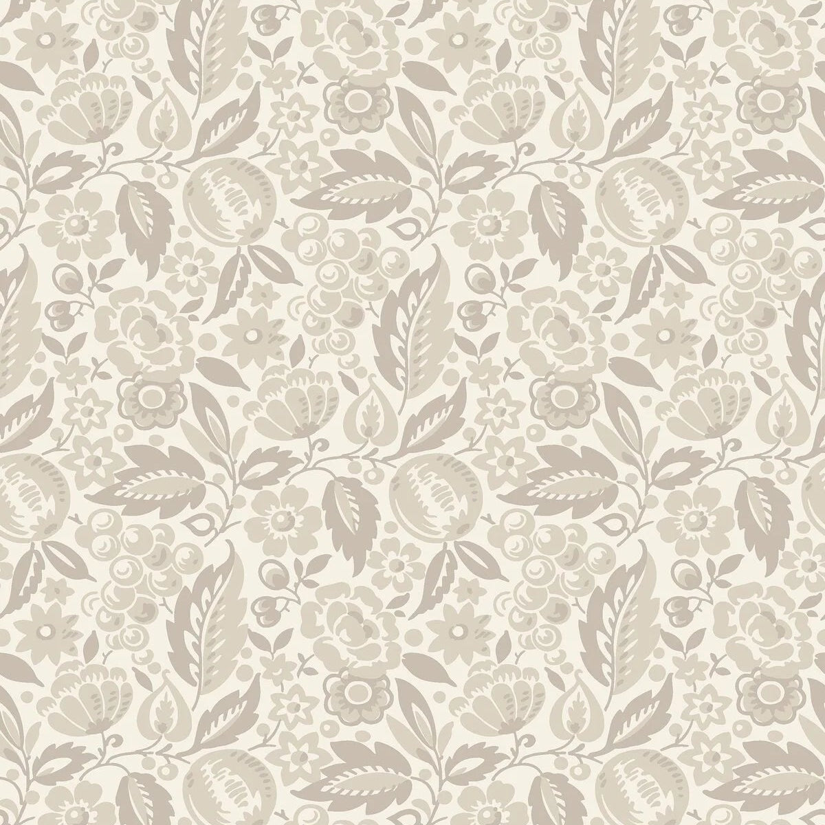 Tapete mit Pflanzenmotiv in Blättern VINTERGRONA grau mit beige