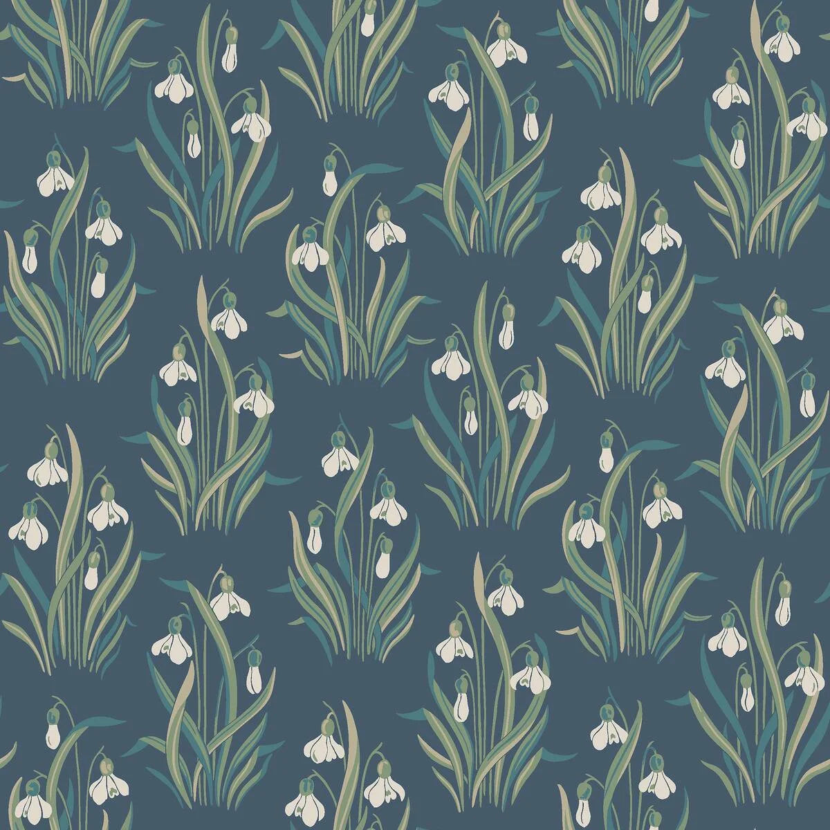 Tapete mit pflanzlichem Blumenmotiv SNODROPPE blau mit grün