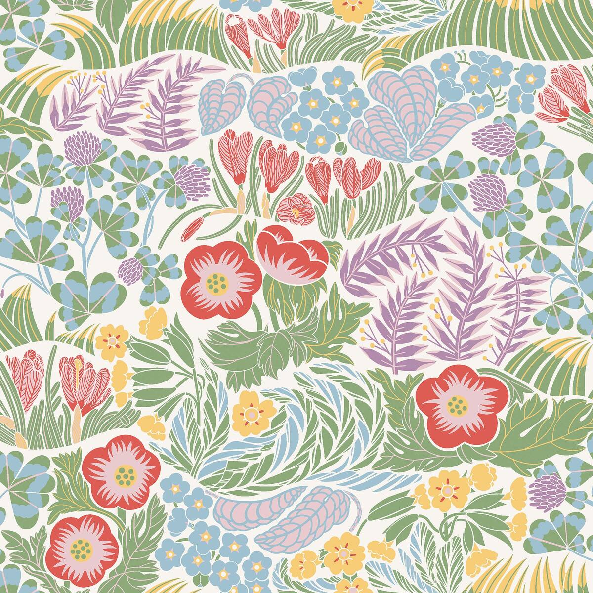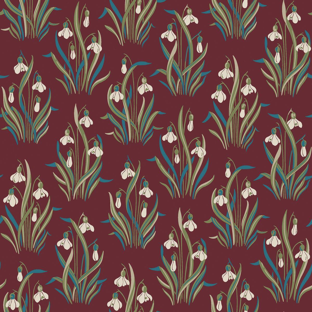 Tapete mit pflanzlichem Blumenmotiv SNODROPPE rot mit blau