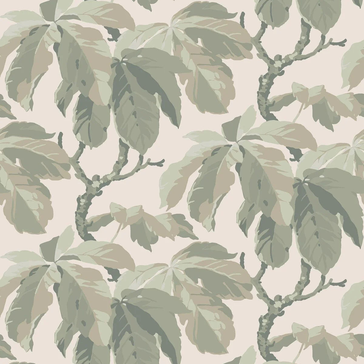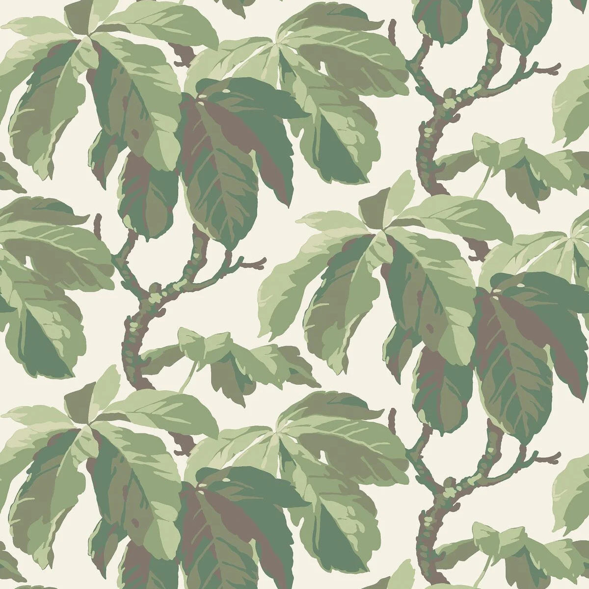 Tapete mit pflanzlichem Motiv KASTANJI in Creme mit Grün