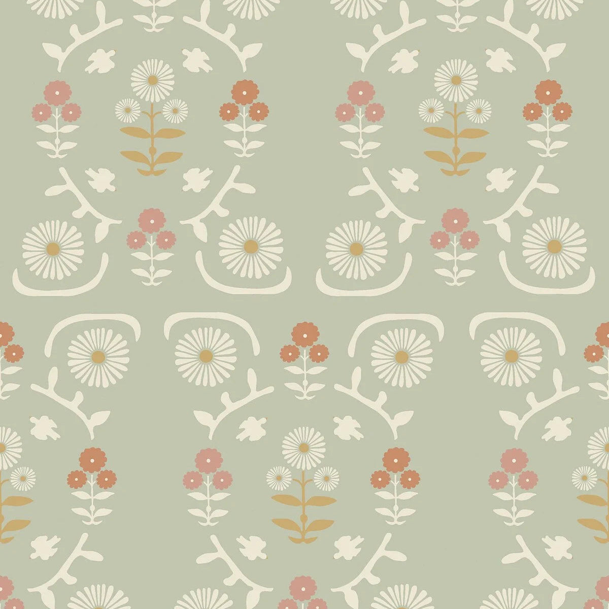 Tapete mit Pflanzenmotiv in Blumen CARNATION GARDEN grün