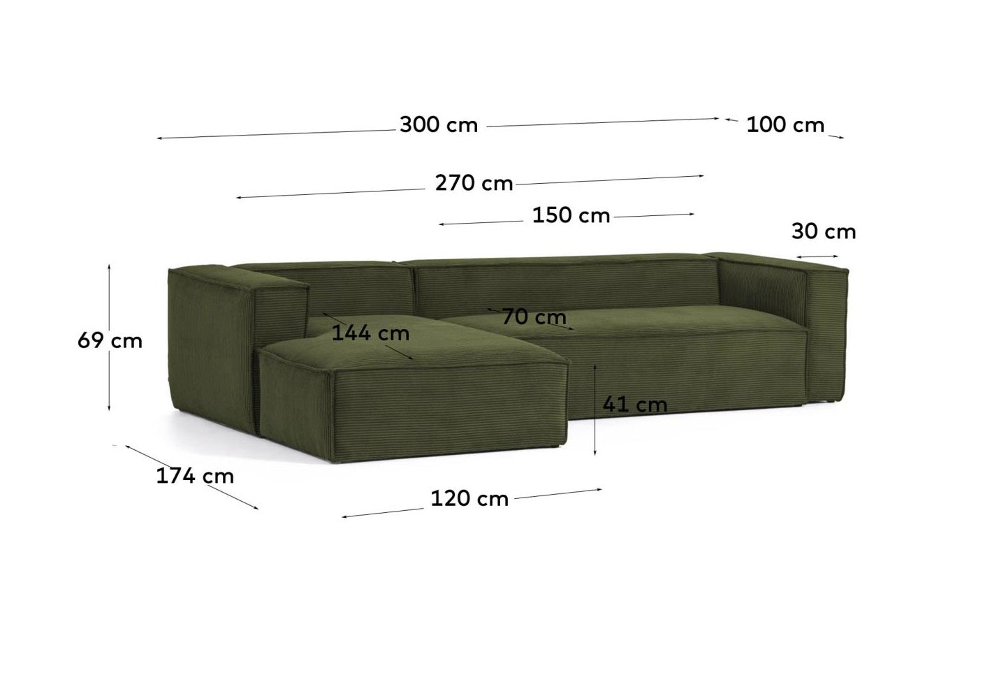 3-Personen-linksseitige Ecke, grüner Cord-Block