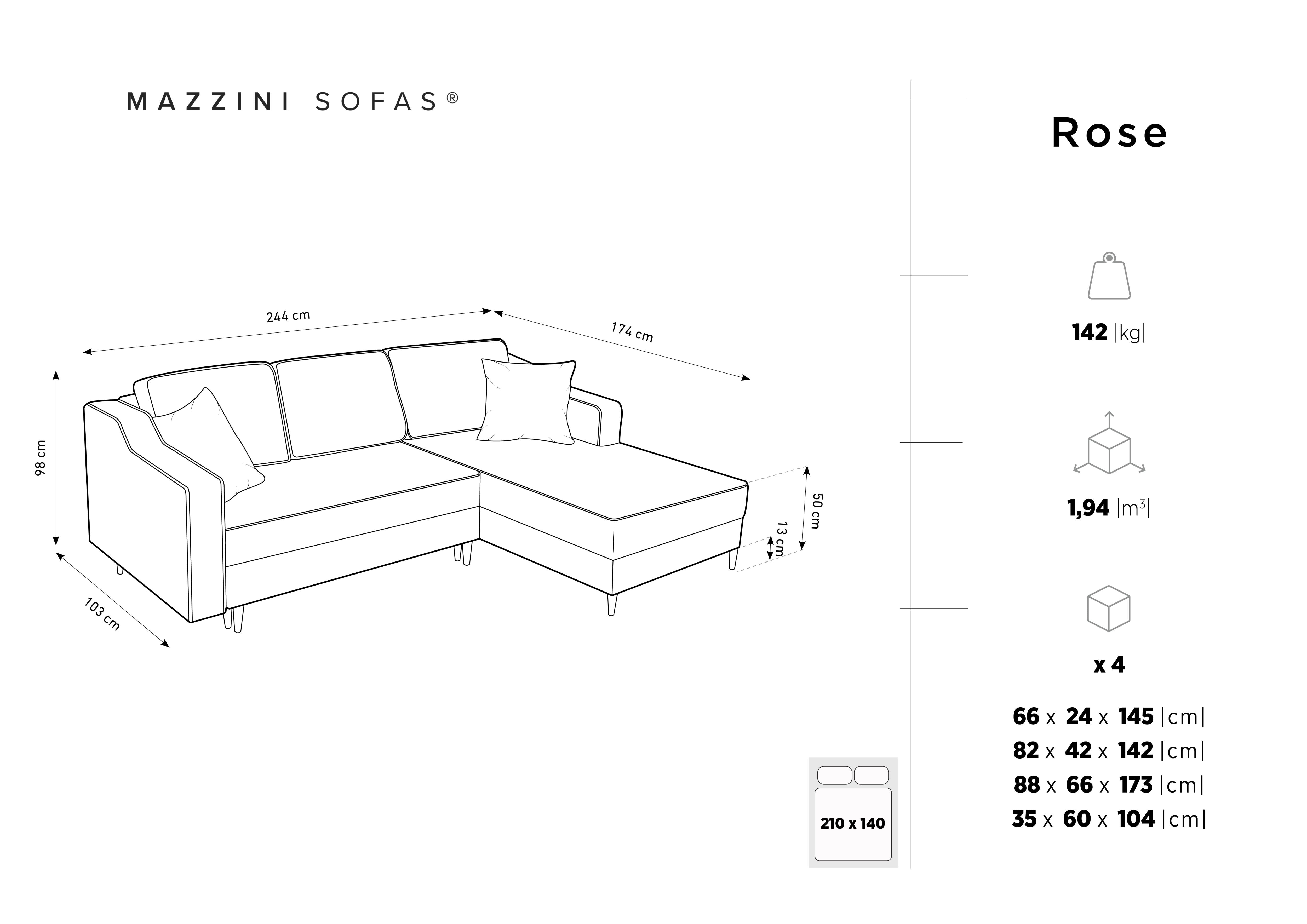 Narożnik prawostronny sztruksowy z funkcją spania ROSE jasnoszary Mazzini Sofas    Eye on Design