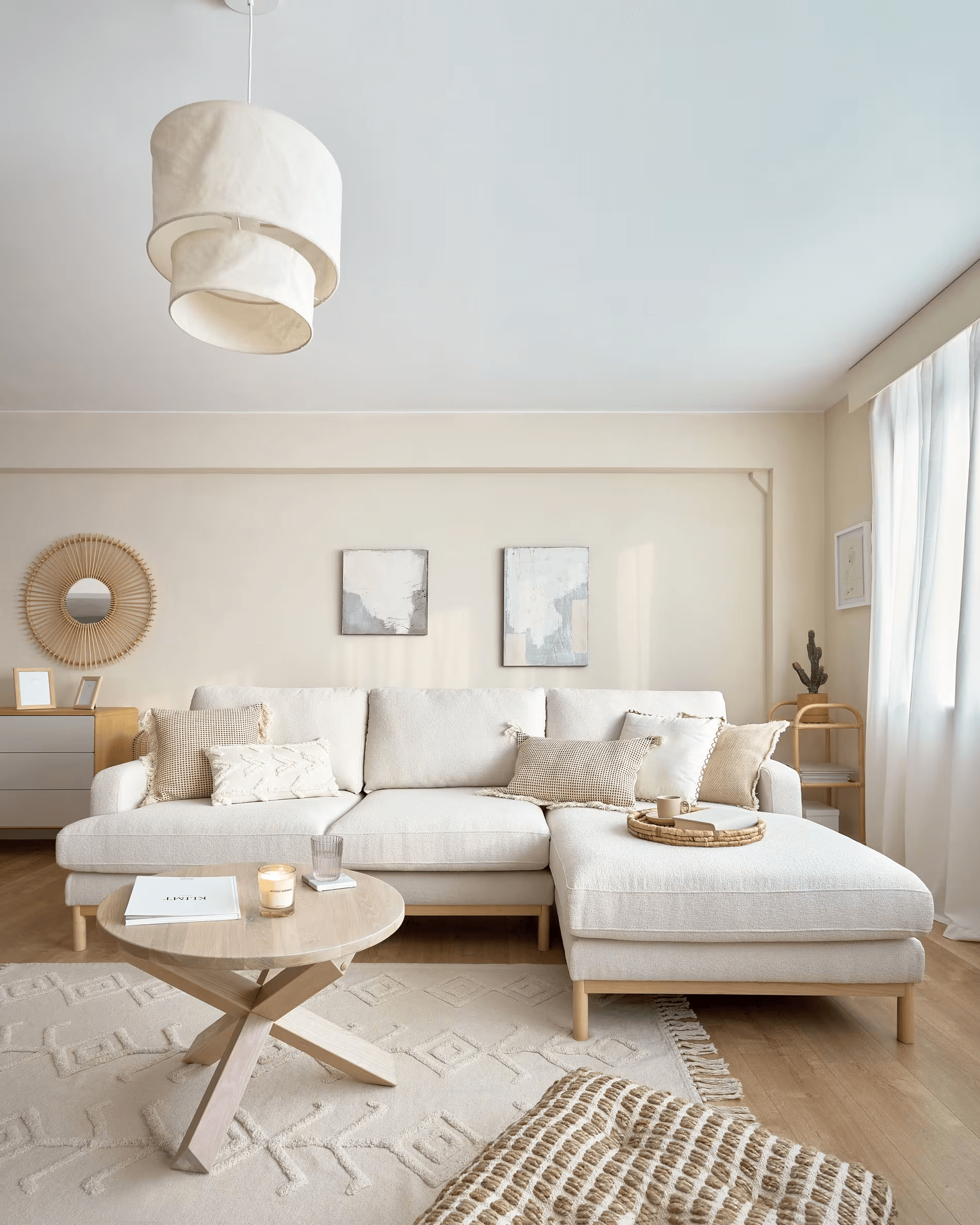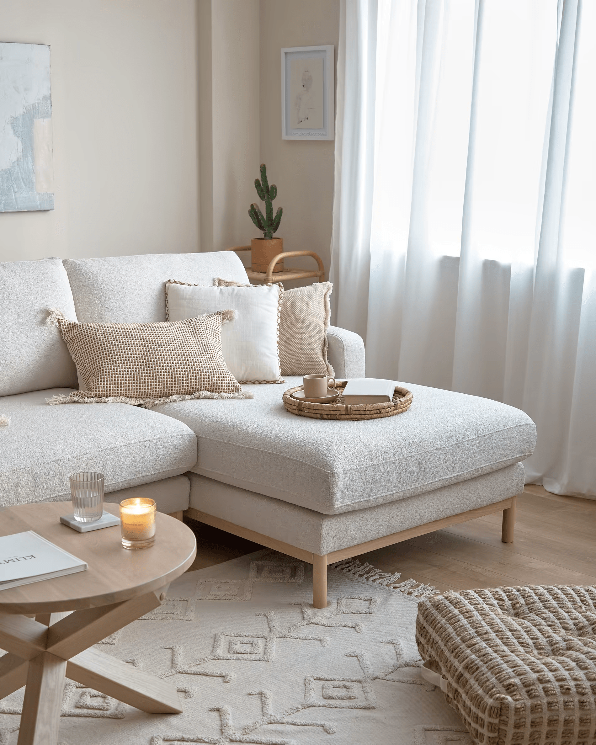 Mihala ist nicht nur Ecke - Dies ist ein Projekt, das Ästhetik und soziale Verantwortung kombiniert. Der Creme Bouclé gibt die Innenuntertünde und betont die Solidität und Haltbarkeit der Möbel. Dies ist nicht nur ein Element der Ausrüstung, es ist auch eine Wahl für diejenigen, die sich mit Schönheit umgeben möchten, während sie sich um unseren Planeten kümmern.