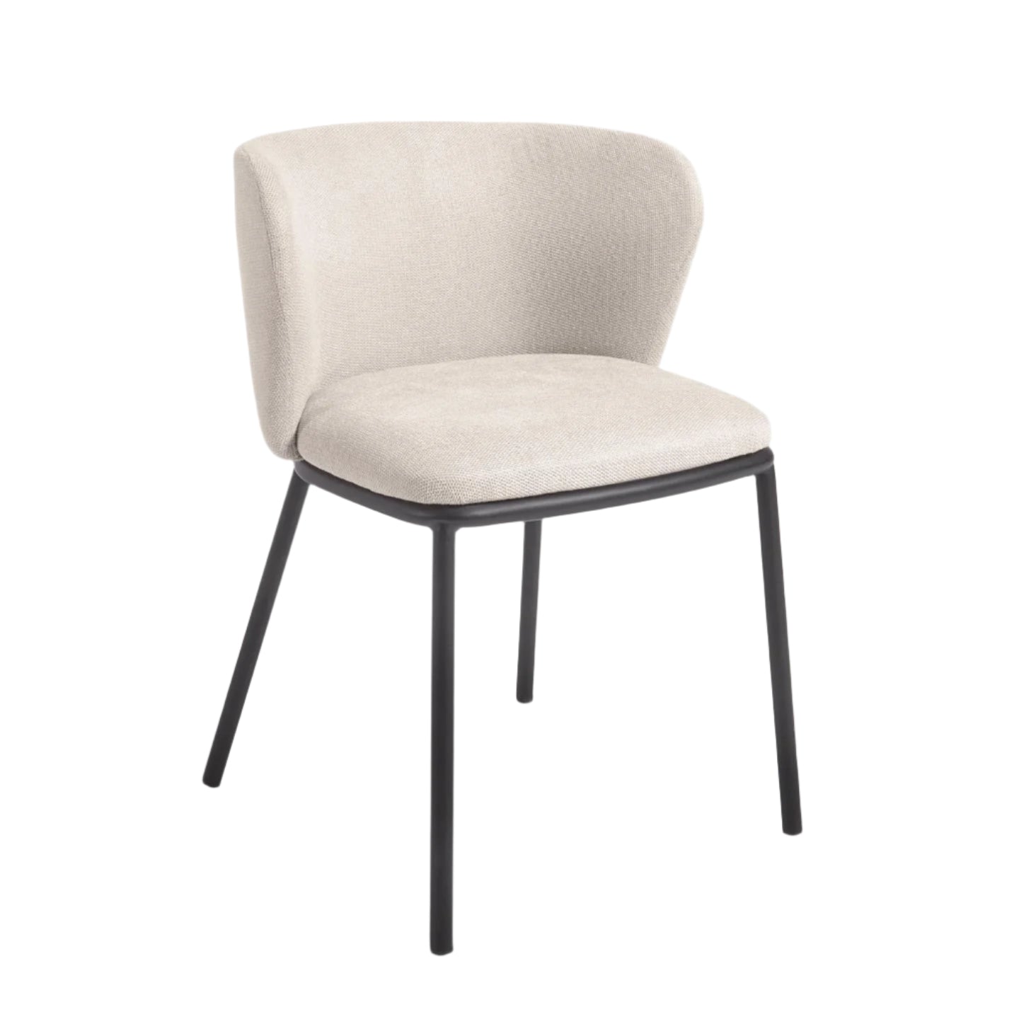 Ein Stuhl im Ciselia Beige Szenil Stoff mit einer schwarzen Basis