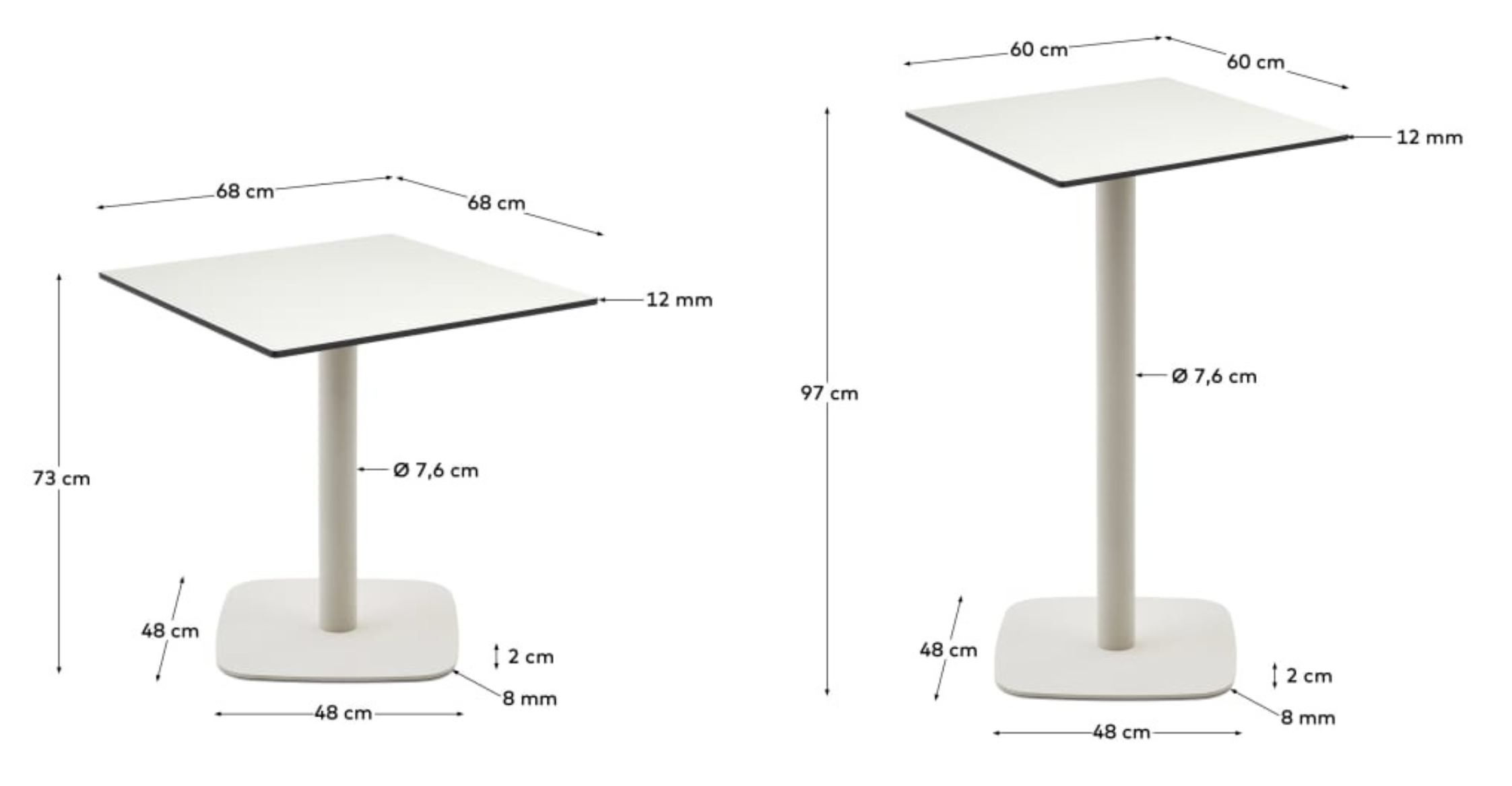 Tisch Dina mit einer weißen Basis und einem weißen Oberteil ist ein elegantes Möbelstück, das jedem Raum einen modernen Charakter verleiht. Das quadratische Oberteil in Weiß und eine Metallbasis, ebenfalls in einem weißen Farbton, erzeugt eine harmonische Komposition, die mit seinem minimalistischen Design die Aufmerksamkeit auf sich zieht.