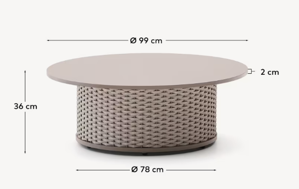 Der Garten-Couchtisch Sedalis ist eine Kombination aus Eleganz, Leichtigkeit und Widerstandsfähigkeit gegenüber Außenbedingungen. Die Aluminiumstruktur, die Stahlverstärkungen und das handgeflochtene Seil bilden ein stabiles und ästhetisches Ganzes. Dezente Kurven, schlichte Linien und modernes Design machen es zur perfekten Wahl für jede Terrassen- oder Gartengestaltung. Dank der Pulverbeschichtung und der E-Coating-Technologie ist der Tisch beständig gegen UV-Strahlung, Rost und Korrosion.