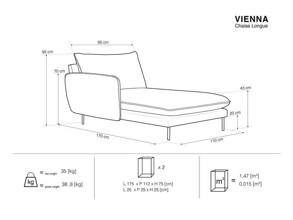 Aksamitny szezlong Vienna wyróżniają piękne proporcje i harmonijne kształty. Szezlong jest nie tylko wygodny, ale też wprowadzi do wnętrza nutę paryskiego szyku i elegancji. Subtelny kształt i miękkie siedzisko zapewnią niezwykły komfort użytkowania. Metalowe nogi nadają całej formie lekkości.