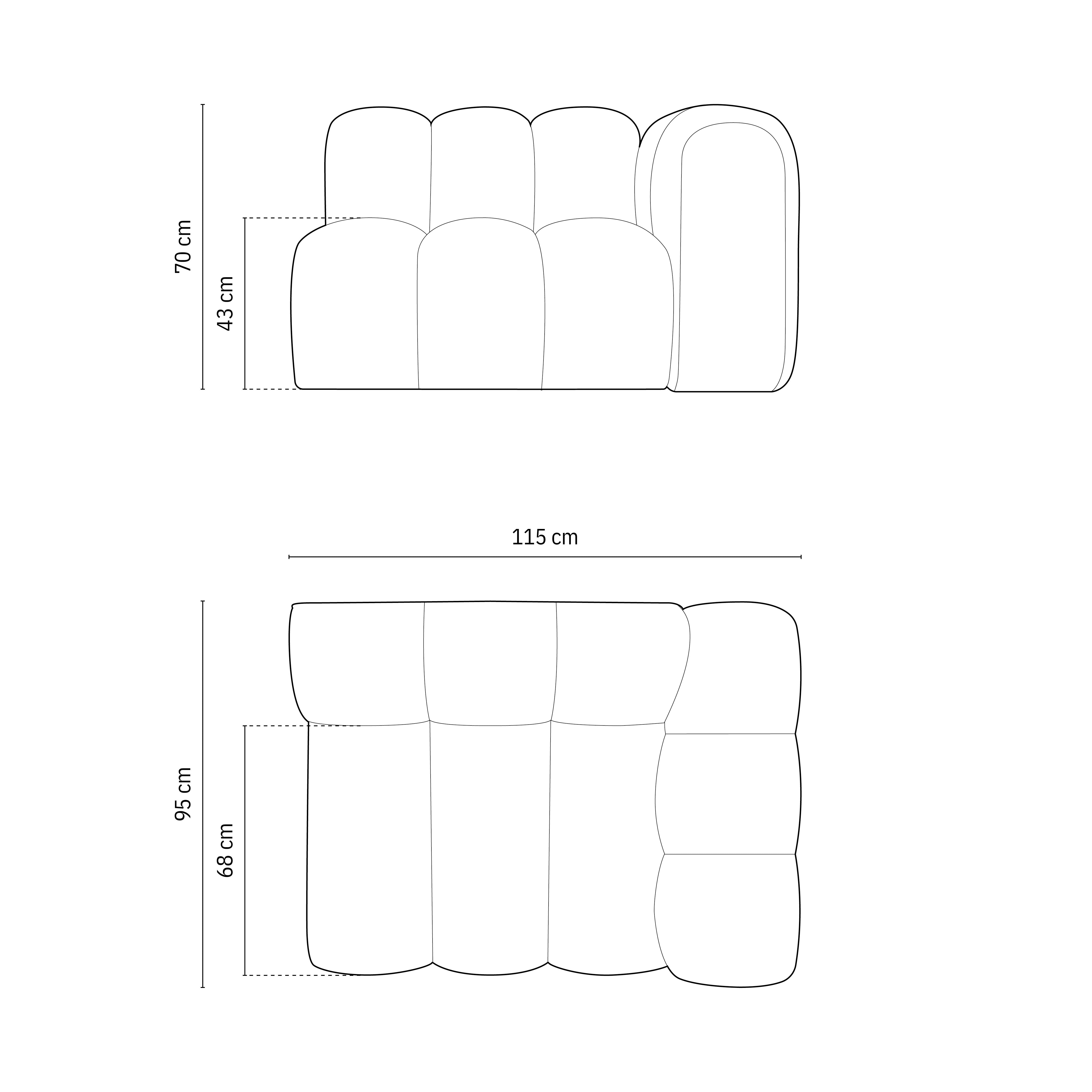 Samtmodulsofa rechts LUPINE beige - Abschlusselement