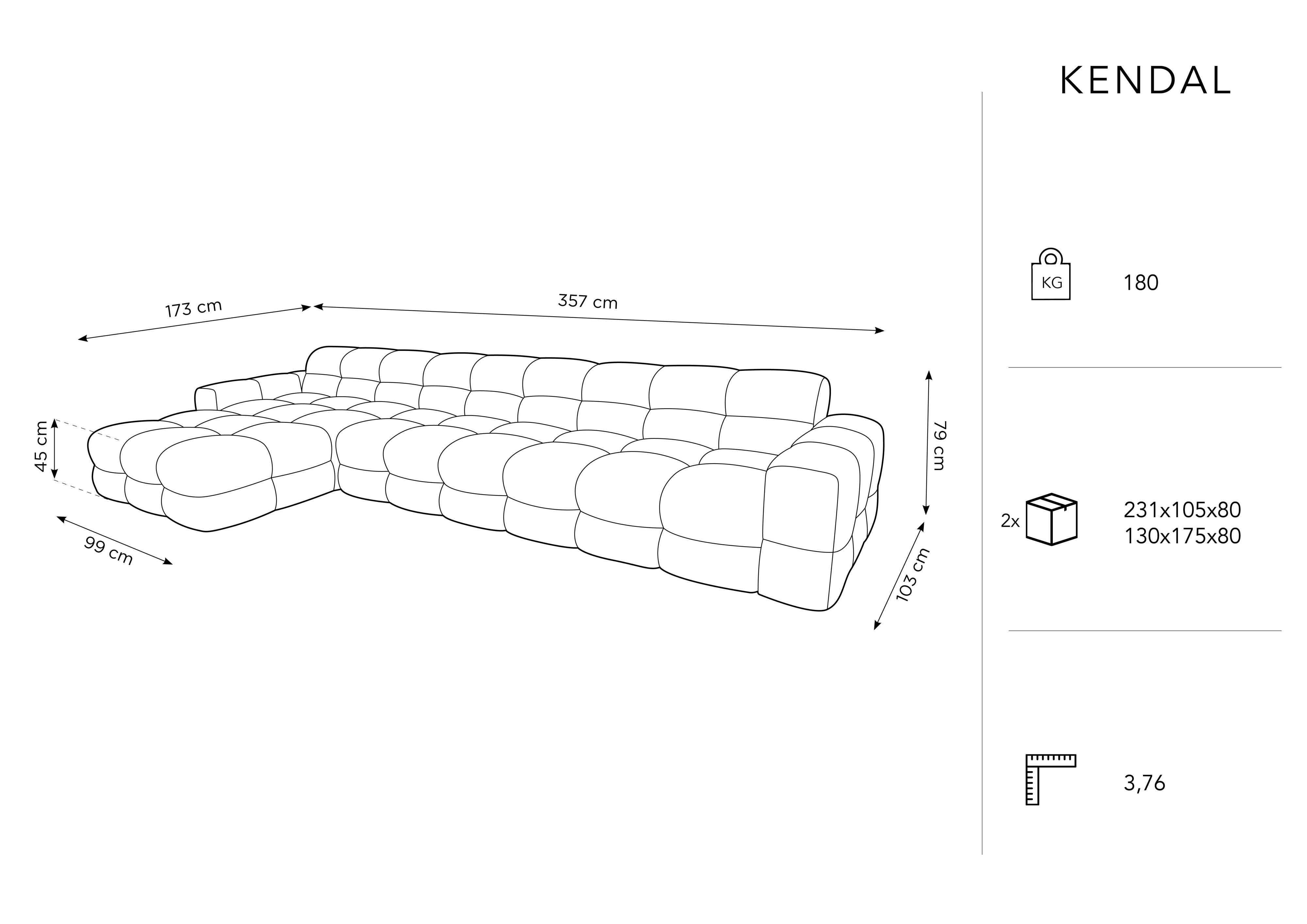 Samtecke für fünf Personen Kendal beeindruckt mit außergewöhnlichem Nähen und Quilten, was das Innenraum zu einer ungewöhnlichen Eleganz im Stil des modernen Klassiker verleiht. Der Blasensitz in Kombination mit einer stilvollen Unterstützung und breiten Armlehnen schafft einen bequemen Ort, um sich nach einem harten Tag zu entspannen. Kendal überrascht ein wenig mit der Avant -Gart -Form und erregt Aufmerksamkeit, unabhängig davon, welche Seite wir es betrachten werden.