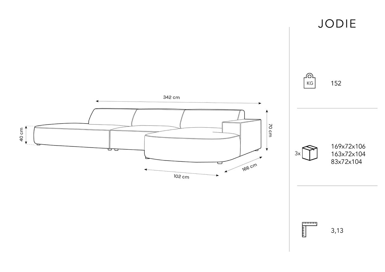 Narożnik aksamitny prawostronny 4-osobowy otwarty JODIE jasnoszary Micadoni    Eye on Design