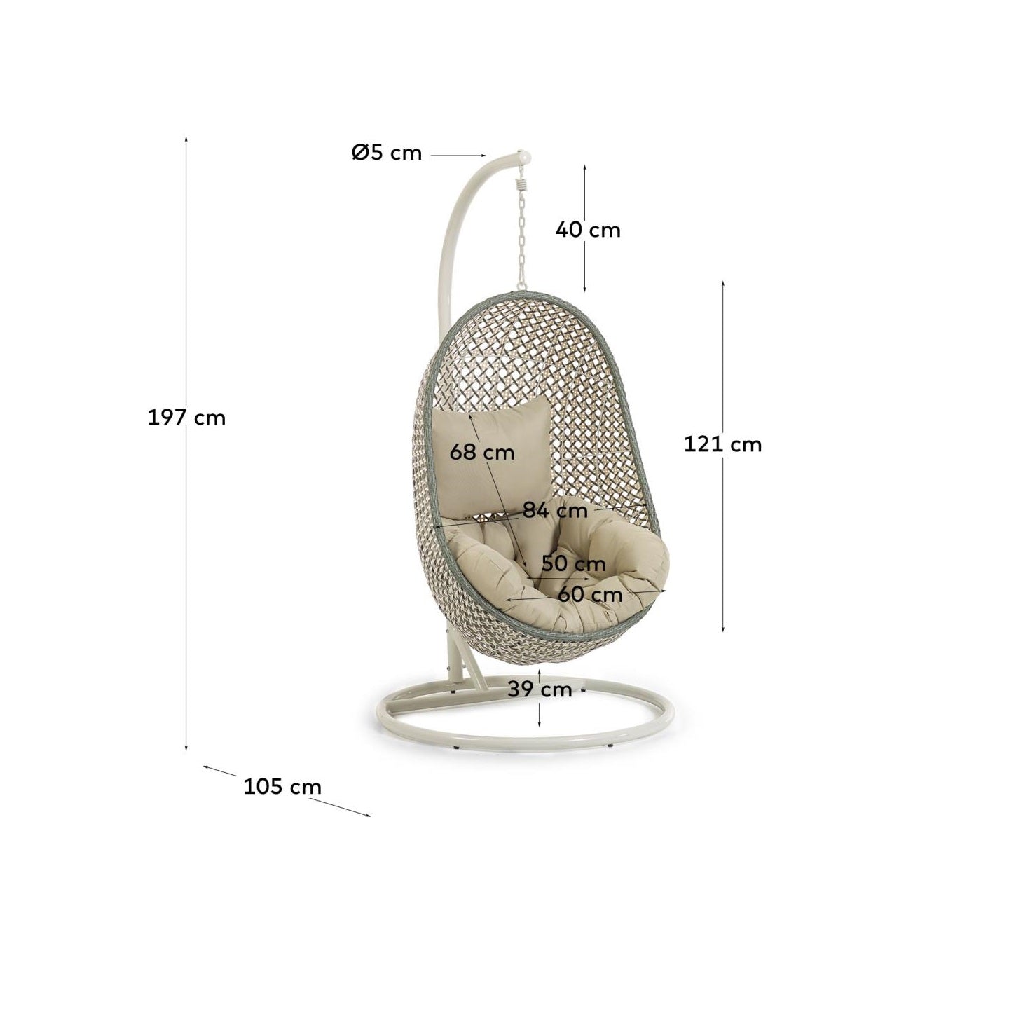 Fotel wiszący CIRA zielony rattan z jasnoszarą podstawą La Forma    Eye on Design