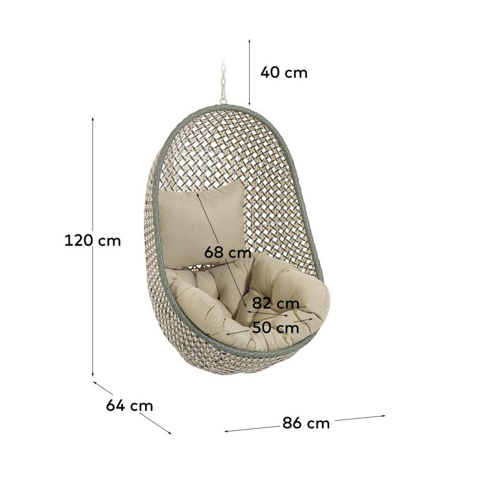 Fotel wiszący CIRA rattanowy z zielonym wykończeniem La Forma    Eye on Design