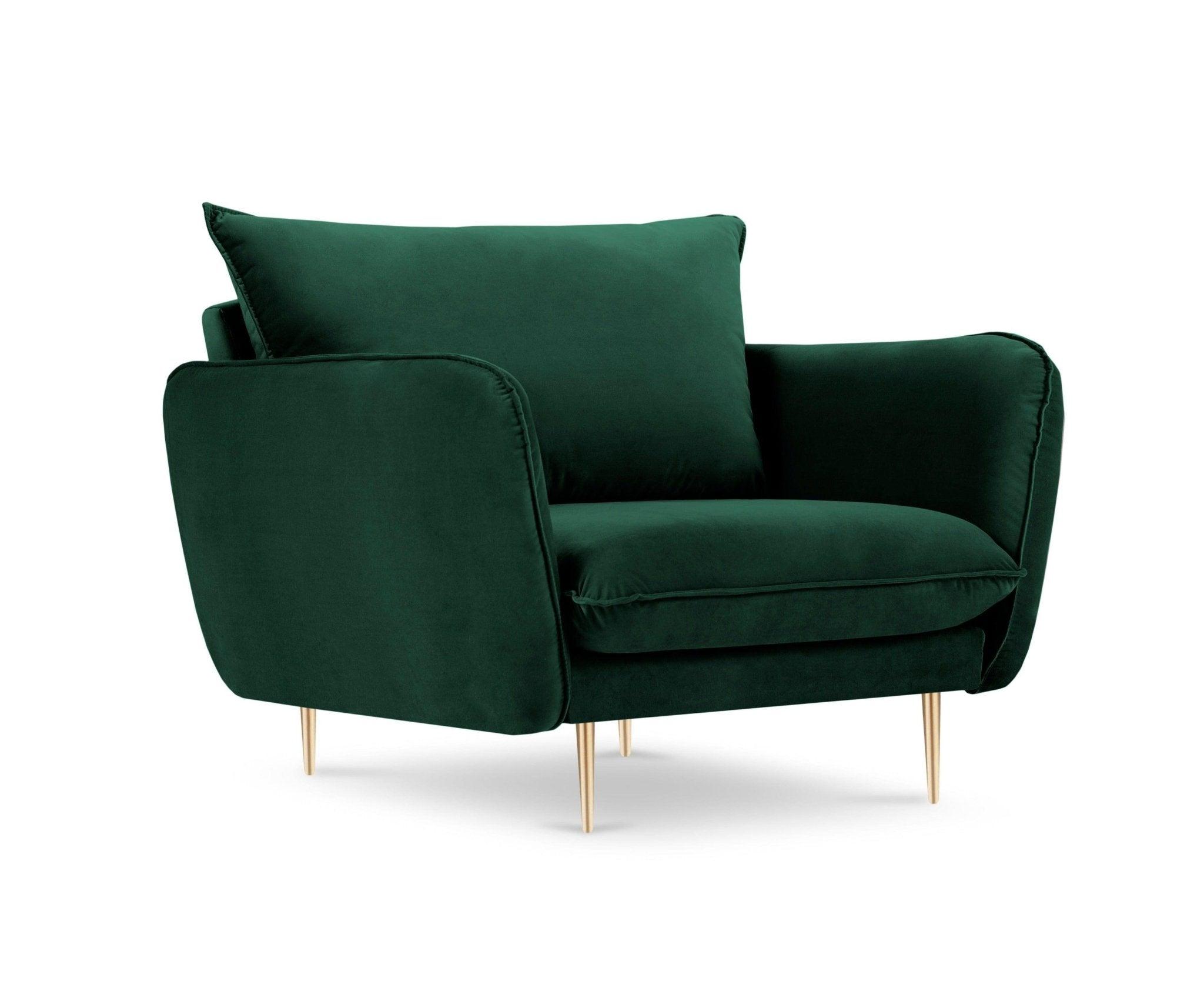 Fotel aksamitny VIENNA zielony ze złotą podstawą Cosmopolitan Design    Eye on Design