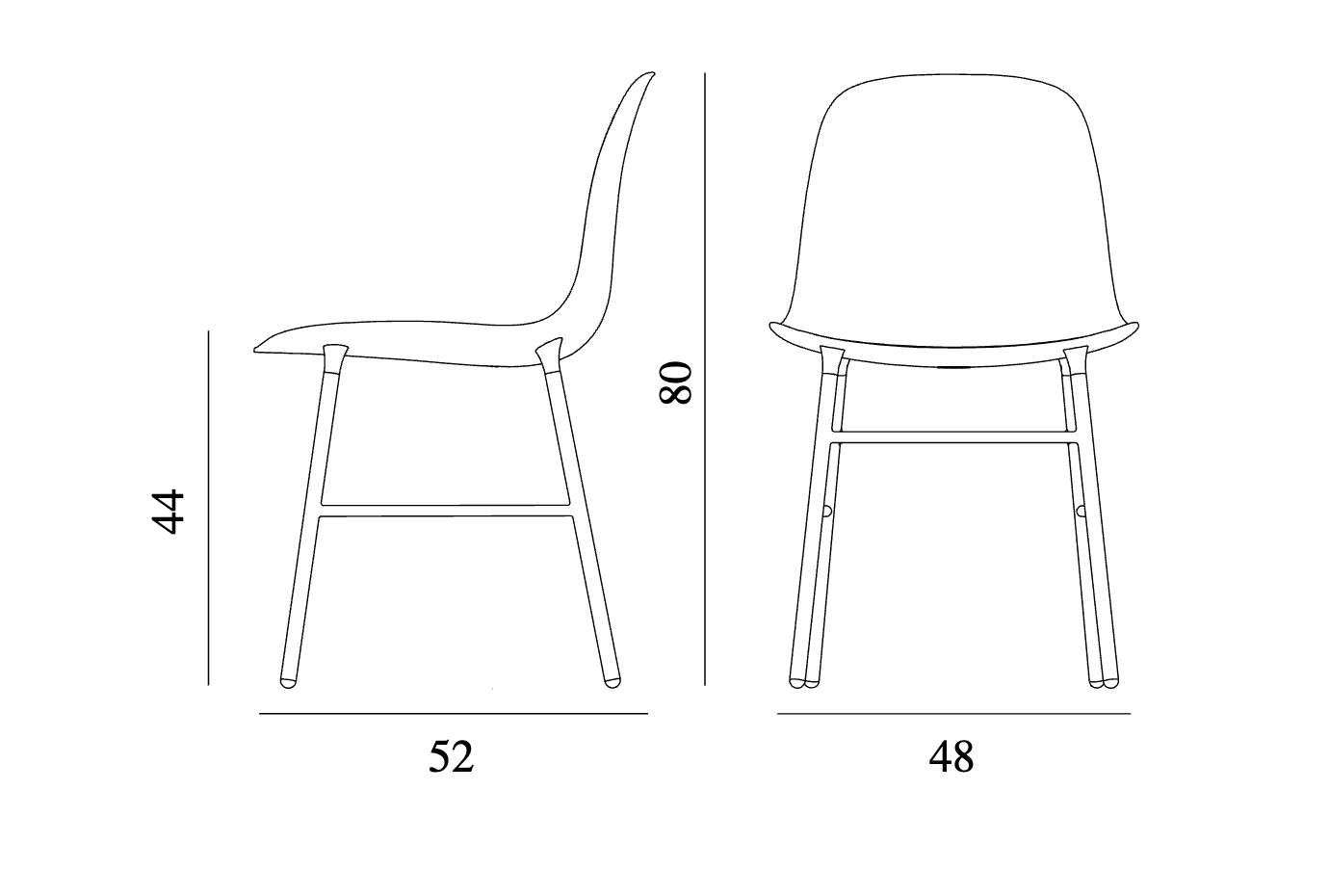 Um dieses nahtlose, integrierte Erscheinungsbild zu erreichen, wurde eine innovative Lösung entwickelt, um den Sitz mit den Beinen zu verbinden. Der gebildete Plastiksitz und der Rahmen aus Eiche, Walnuss oder Stahl sind mit einem einzigartigen Tassensystem natürlich in den Sitz integriert. Plastiksitz und Holz- oder Stahlbeine kombinieren auf elegante Weise und betonen die hohe Qualität des Projekts.