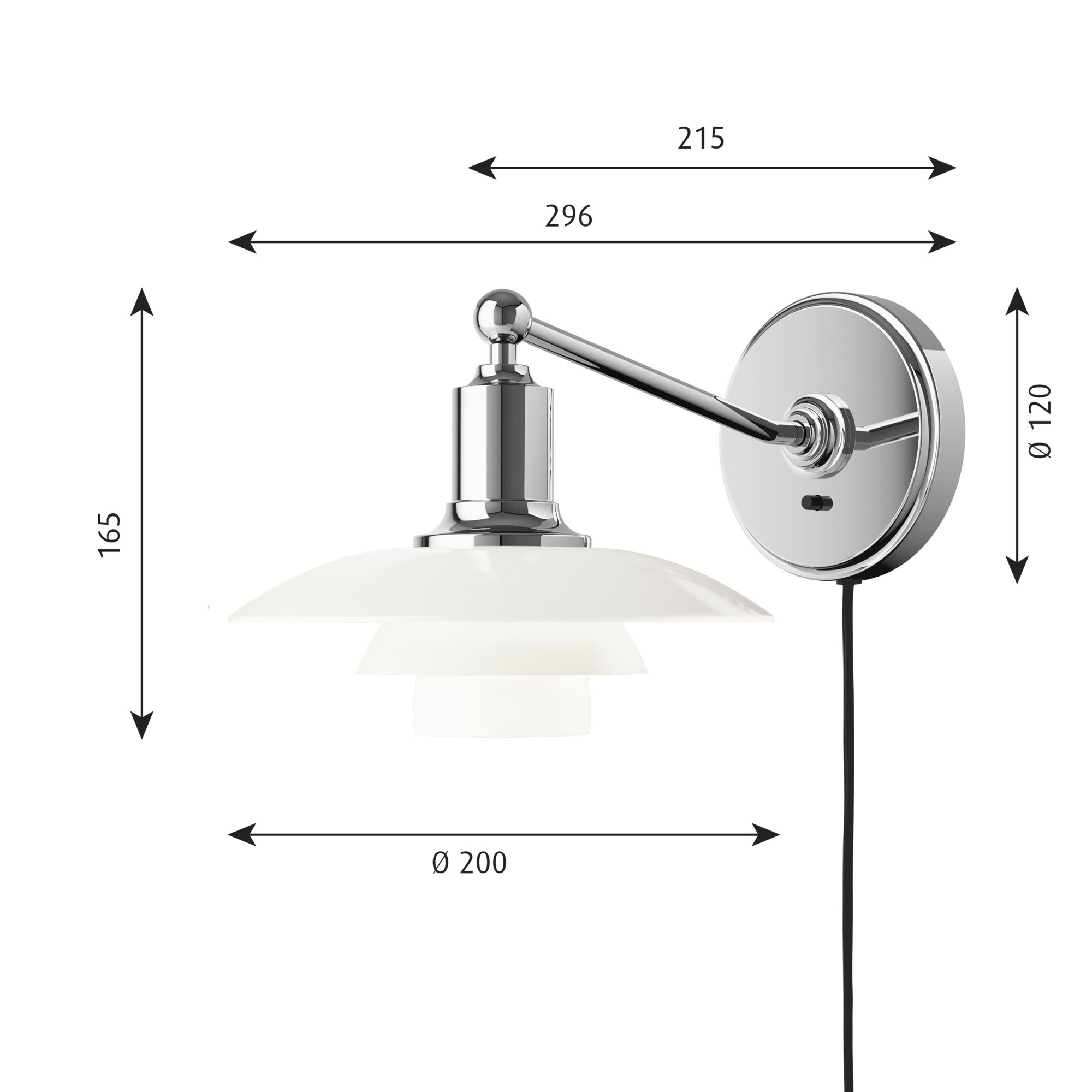 Lampa ścienna PH 2/1 biały z chromowaną podstawą