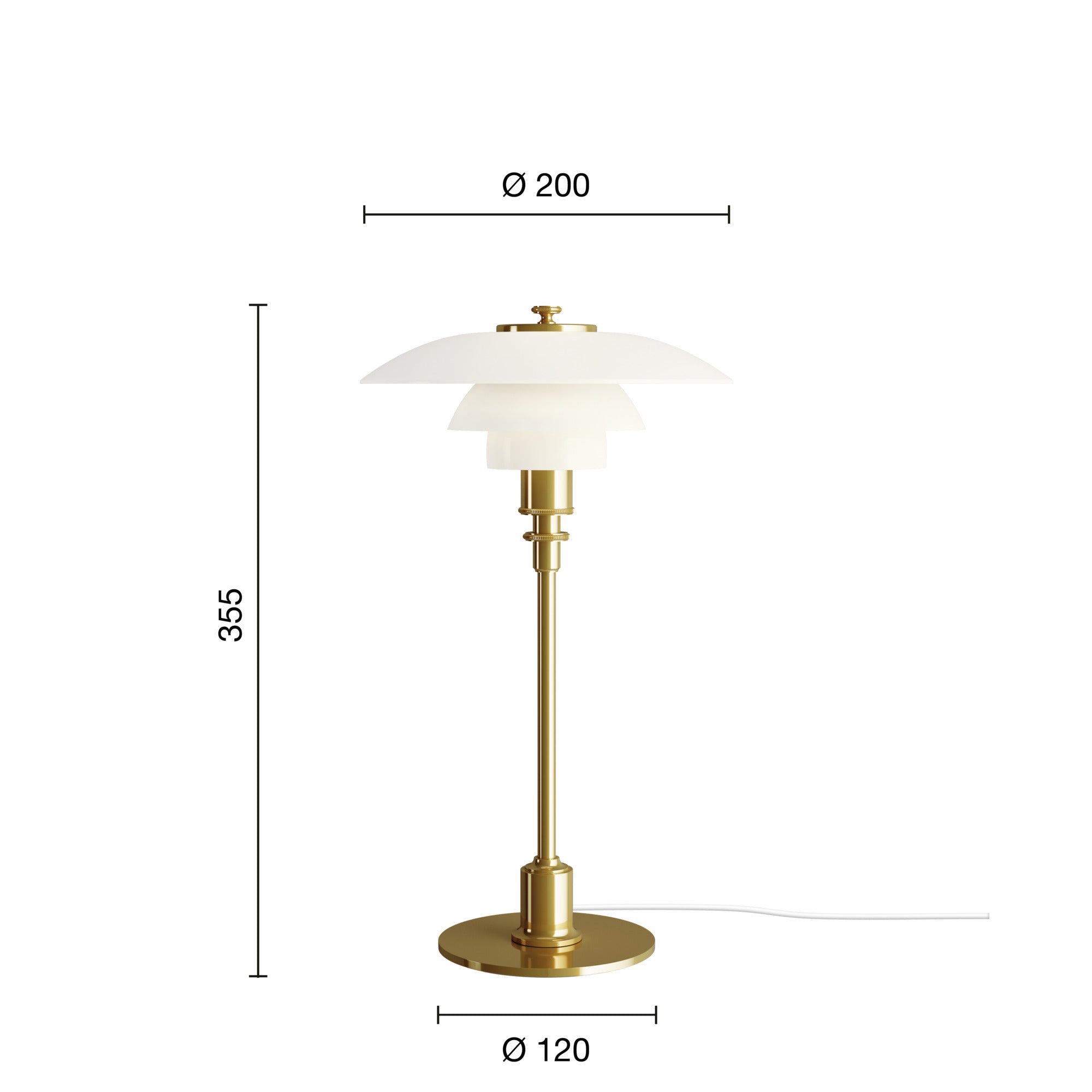 Tischlampe PH 2/1 ist ein klassisches Werk von Poul Henningsen, entworfen auf der Grundlage seines berühmten, dreischaligen Systems aus dem Jahr 1925, das vollkommen blendfreies Licht und sanfte, harmonische Beleuchtung bietet. Die Schirme aus dreilagigem, mundgeblasenem opalem Glas lenken das Licht hauptsächlich nach unten und schaffen einen angenehmen, gleichmäßigen Schein. Dank ihrer zeitlosen Form und perfekten Proportionen stellt die Tischlampe PH 2/1 einen eleganten Akzent auf dem Schreibtisch, der Kommode oder dem Nachttisch dar – sowohl in klassischen als auch in modernen Innenräumen.