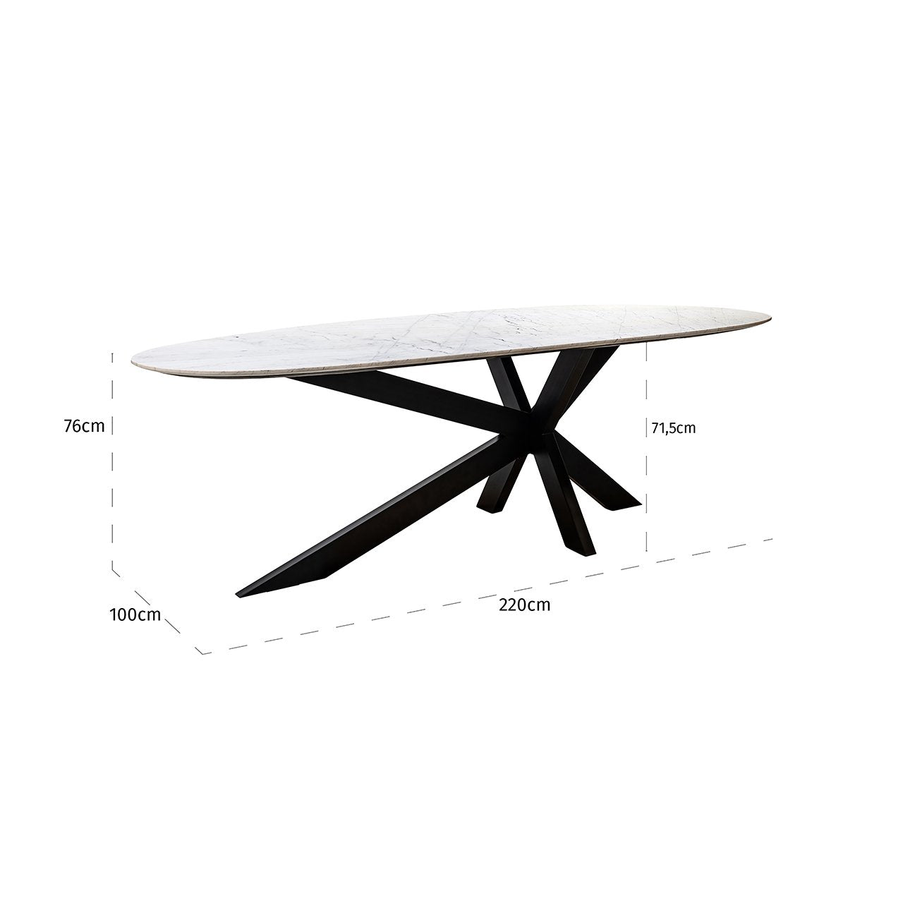 Tisch TROCADERO weißer Marmor mit schwarzem Gestell