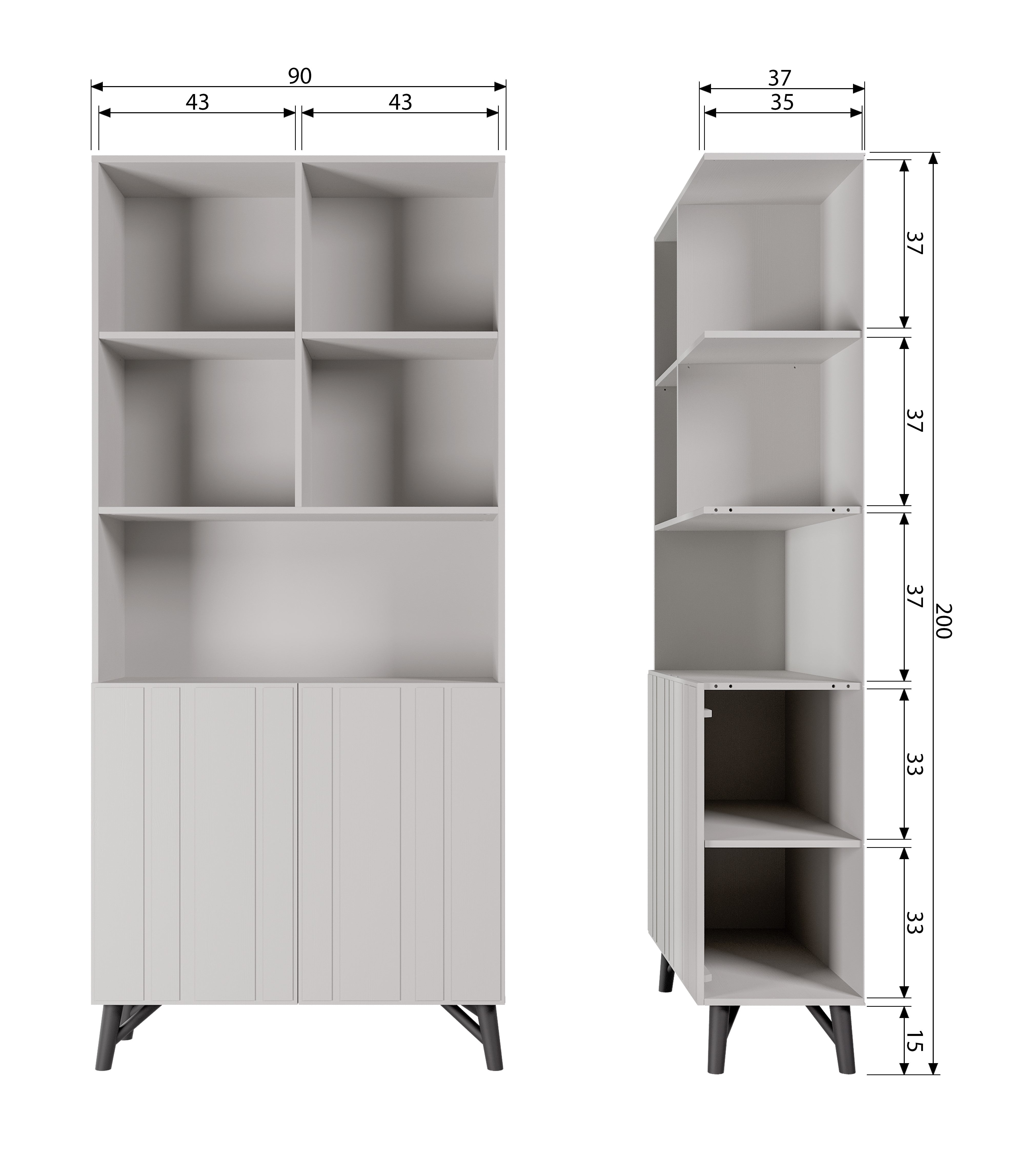 Gestell Miller wurde aus zertifiziertem Kiefernholz hergestellt und in Sand fertiggestellt. Dieses einzigartige Möbelstück kombiniert offene und geschlossene Fächer und schafft ein stilvolles Ganzes und bietet viel Platz für die Aufbewahrung der schönsten Accessoires.