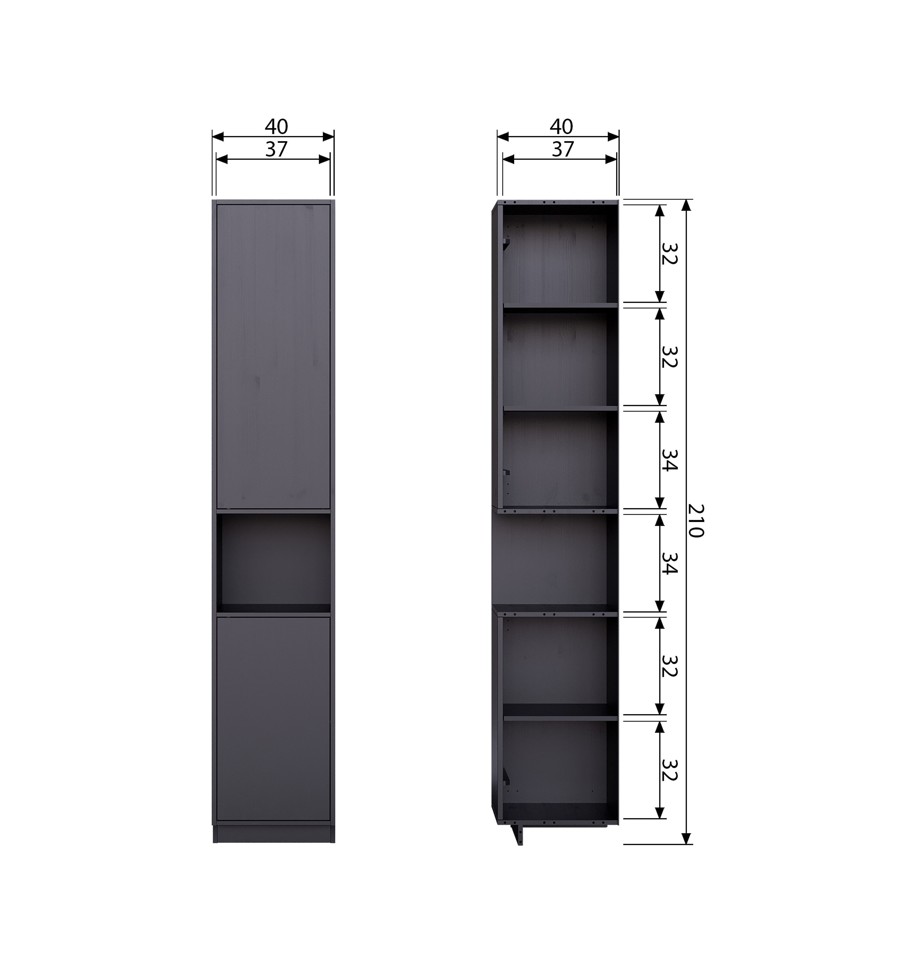 Gestell Die Fiana bestand aus zertifiziertem Kiefernholz und wurde in tiefem Schwarz fertiggestellt. Dieses einzigartige Möbelstück kombiniert offene und geschlossene Fächer und schafft ein stilvolles Ganzes und bietet viel Platz für die Aufbewahrung der schönsten Accessoires.