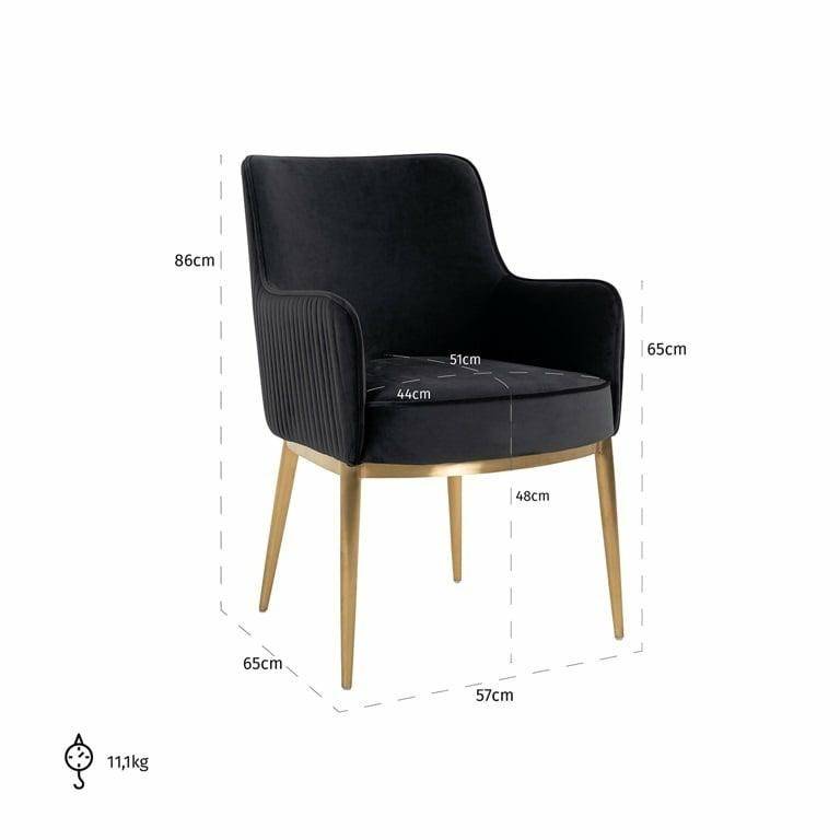 Das Vergnügen, auf diesem Stuhl zu sitzen, ist dank der komfortablen, samtigen Polsterung garantiert. Weiches Material bietet Komfort bei langen Mahlzeiten oder Momenten der Entspannung. Darüber hinaus verleihen hohe Armlehnen noch mehr Komfort und ermöglichen eine bequeme Unterstützung der Hände.