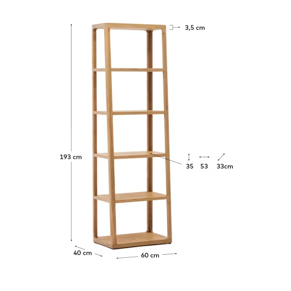 Hoches Bücherregal Maymai ist eine hervorragende Harmonie zwischen der natürlichen Essenz von Eichenholz und einem minimalistischen, langlebigen Design. Dies sind nicht nur Möbel, sondern auch ein einzigartiges Angebot für diejenigen, die gleichzeitig Subtilität, Funktionalität und Ästhetik in ihrem Innenraum einbringen möchten.