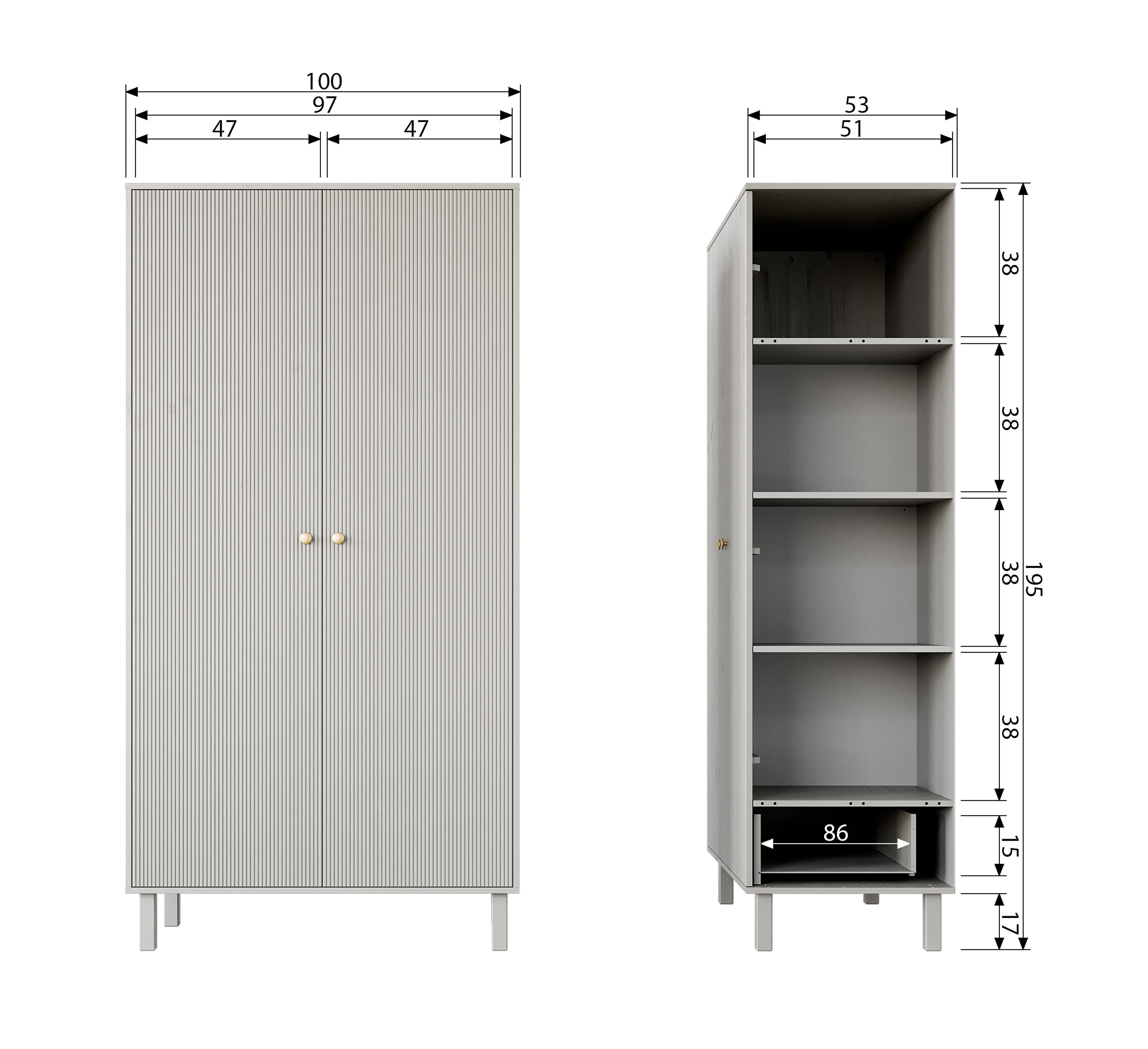 Szafa 2-drzwiowa MADU szary Woood    Eye on Design