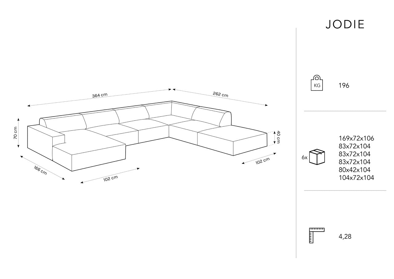 Das Jodie -Panorama -Sofa ist dank seiner großen Größe sehr bequem, sodass Sie auch sieben Personen darauf sitzen können. Darüber hinaus verfügt es über weiche, komfortable Rückenblocketten und Sitze, die beim Gebrauch Komfort bieten.