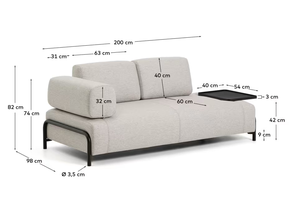Elegantes 2-Sitzer Sofa Compo vereint modernes Design, hohe Funktionalität und Umweltbewusstsein. Ihre robuste Konstruktion aus pulverbeschichtetem Stahl mit mikrotexturiertem Finish garantiert Langlebigkeit, während das praktische Tablett aus Eichenfurnier einen besonderen Charakter verleiht. Die mittelfeste Sitzfläche aus Schichten von Schaumstoff und elastischen Bändern sorgt für Komfort und die richtige Unterstützung, sodass das Sofa ideal für den täglichen Gebrauch geeignet ist.