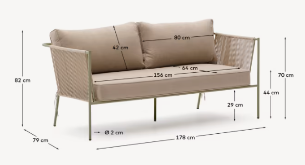 Zivia zu Doppelsofa, was moderne Ästhetik mit Haltbarkeit und Bequemlichkeit kombiniert. Sein stahlvergasstes Design in einem grünen Finish ist extrem resistent gegen Korrosion und Abrieb, was es ideal für äußere Räume macht. Die Rückenlehne des handfesten uv -resistenten Seils von Hand -begeistert Sofa Subtile Eleganz und bietet außergewöhnlichen Nutzungskomfort.
