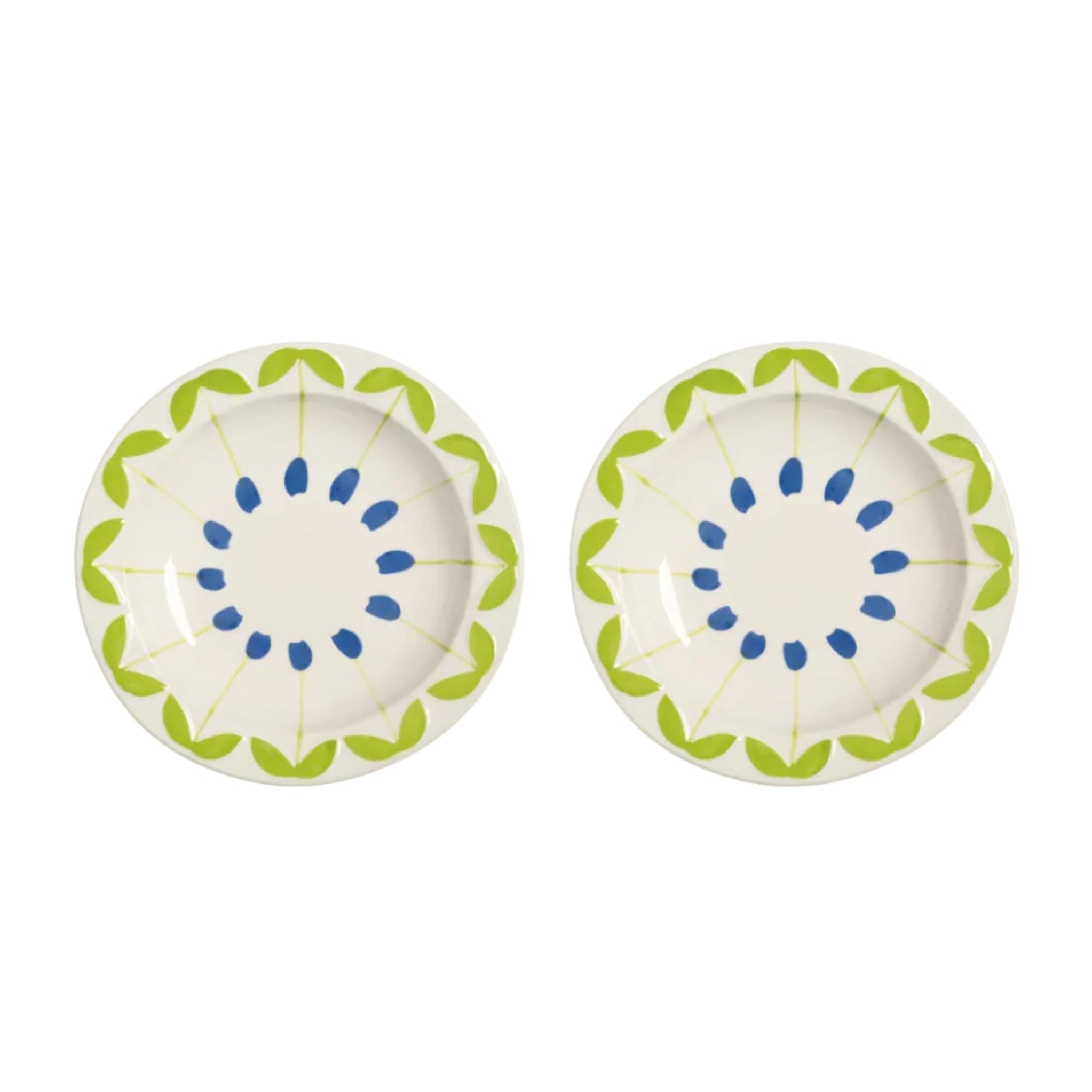Frühstücksteller-Set FOLK weiß mit Blau und Grün