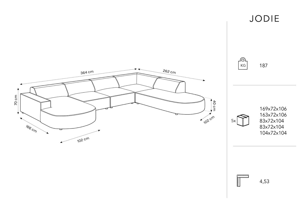 Iodia Panorama -Sofa Es ist ein elegantes und funktionelles Sofa, das perfekt zu verschiedenen Innenräumen passt. Es besteht aus hochwertigem Stoff Velviery, die sich angenehm angenehm und leicht sauber halten.