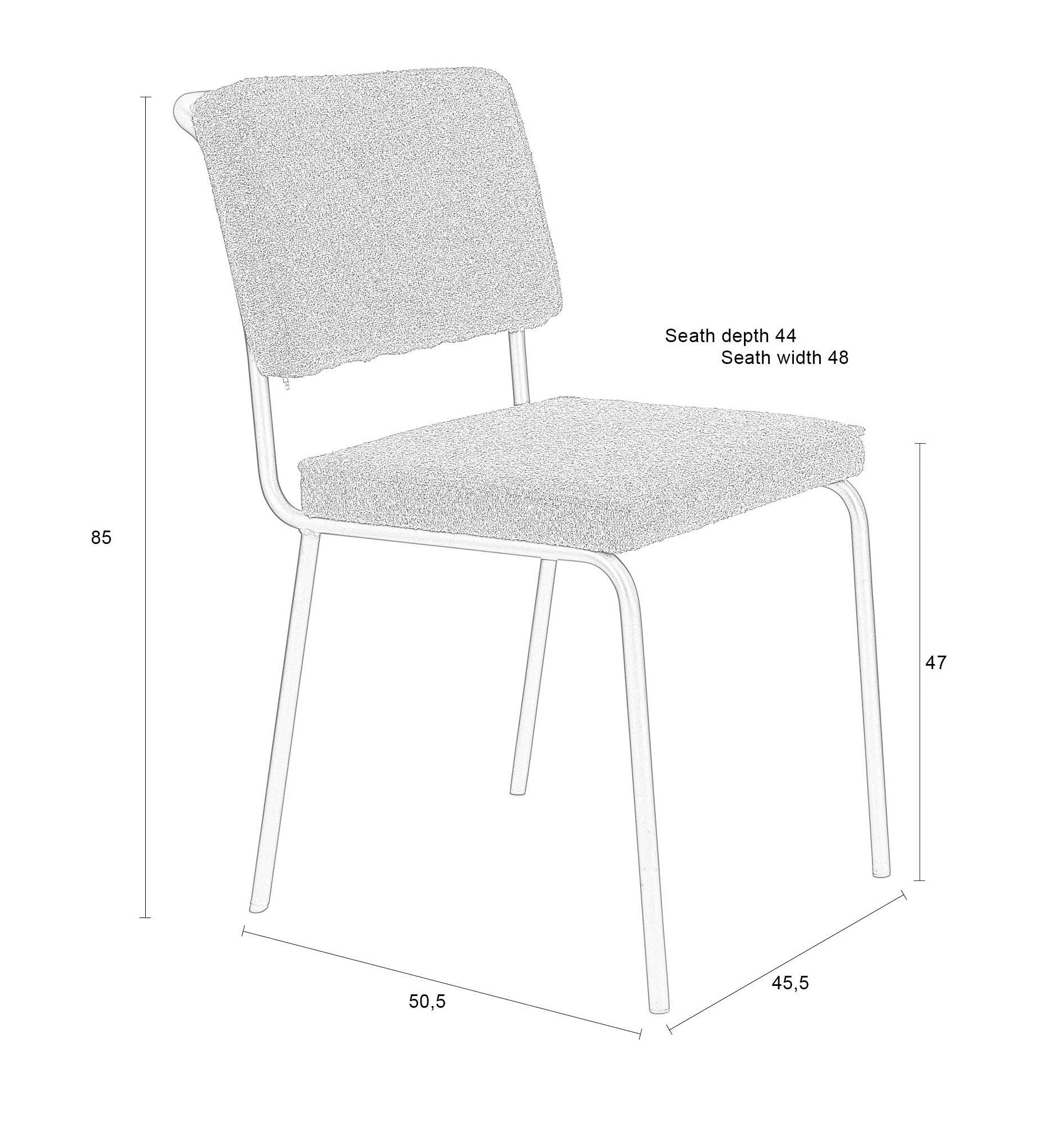 Stuhl Der Buddha wurde für Komfort entwickelt, es hat einen leichten Rahmen und einen weichen Boucle -Stoffpolster. Die Polsterung besteht aus 100% recycelten Materialien Ein Stuhl mit einer ökologischen Wahl. Der Stuhlrahmen geht reibungslos in den Griff auf der Rückseite, was ihm ergonomische Details verleiht und das Manövrieren erleichtert.