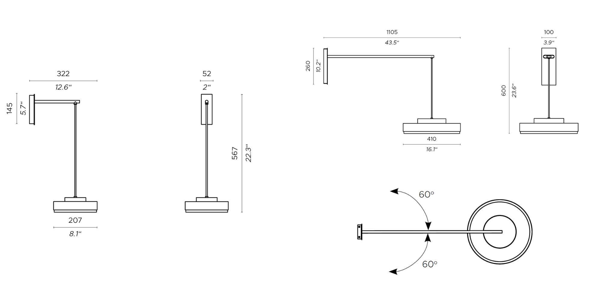 Lampa ścienna DISCUS czarny z mosiężnym wykończeniem Contardi S bez opcji ściemniania  Eye on Design