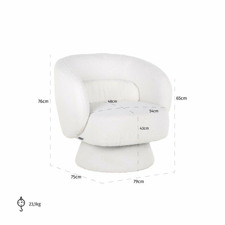 Schwenken Senna in White ist ein Synonym für Luxus und Moderne. Es ist ein Möbelstück, das nicht nur Handelsfunktionen bietet, sondern auch mit einem einzigartigen Finish beeindruckt. Das Ganze wurde mit einem schönen, weißen pelzigen Stoff gepolstert, was einen visuellen Effekt erzeugt, der ins Auge fällt und Eleganz verleiht. Senna Sessel ist eine echte ODA für Komfort und Stil.