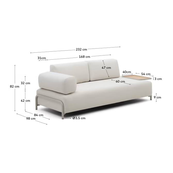 Sofa Compo, a unique Kave Home design, is not only a furniture to sit, but a real work of art in which every element is carefully composed, creating a harmonious whole. It is a combination of design, convenience and versatility, which makes Compo become the focal point of any interior.