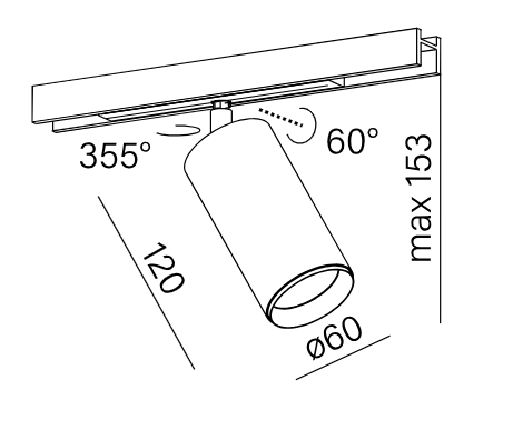 Thanks to the ability to rotate 355° and adjust the tilt angle up to 60°, the track spotlight offers complete freedom in directing light. Three available color temperatures allow you to match the light to the character of the room, and a high color rendering index (CRI>90) ensures natural color reproduction. There is also the option to customize the color of the fixture and the applied