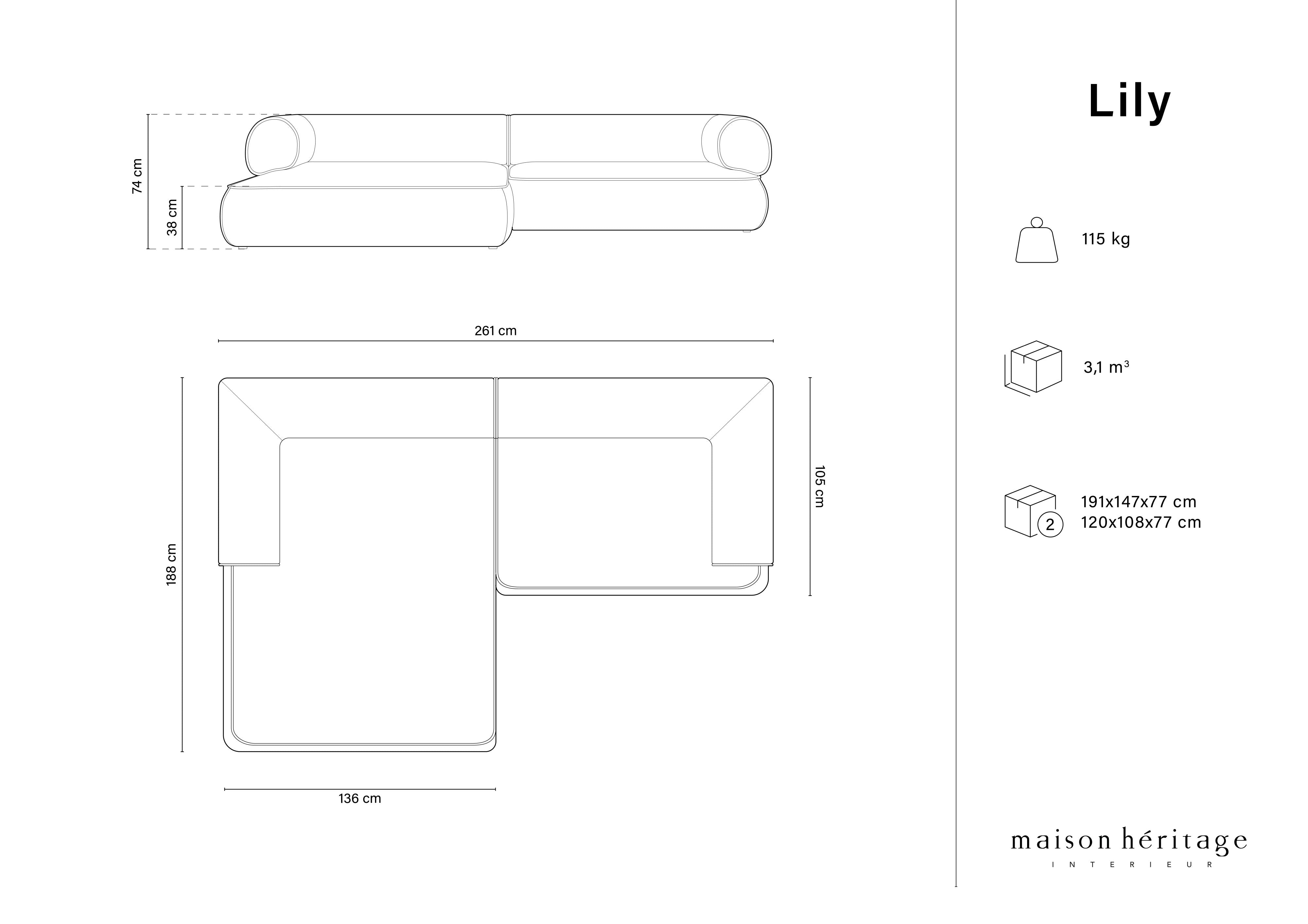 Stylish corner Lily will add a note of timeless elegance to each interior. A unique form is the result of a modern approach to timeless furniture shapes. Rounded edges of the seats They have an extremely original shape, and the backrests provide adequate comfort during rest. The upholstery made of black fabric is not only practical, but also pleasant to the touch.