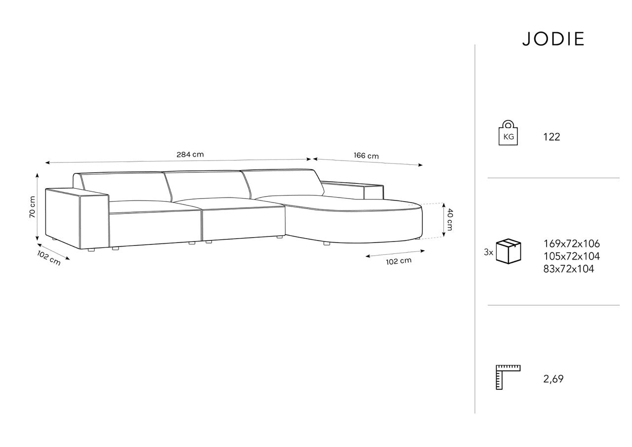 The sofa seat is made of velvet fabric, which guarantees not only convenience, but also durability and resistance to damage. Jodie sofa is also very practical - it can be ordered with the option of the left or right, depending on the needs.