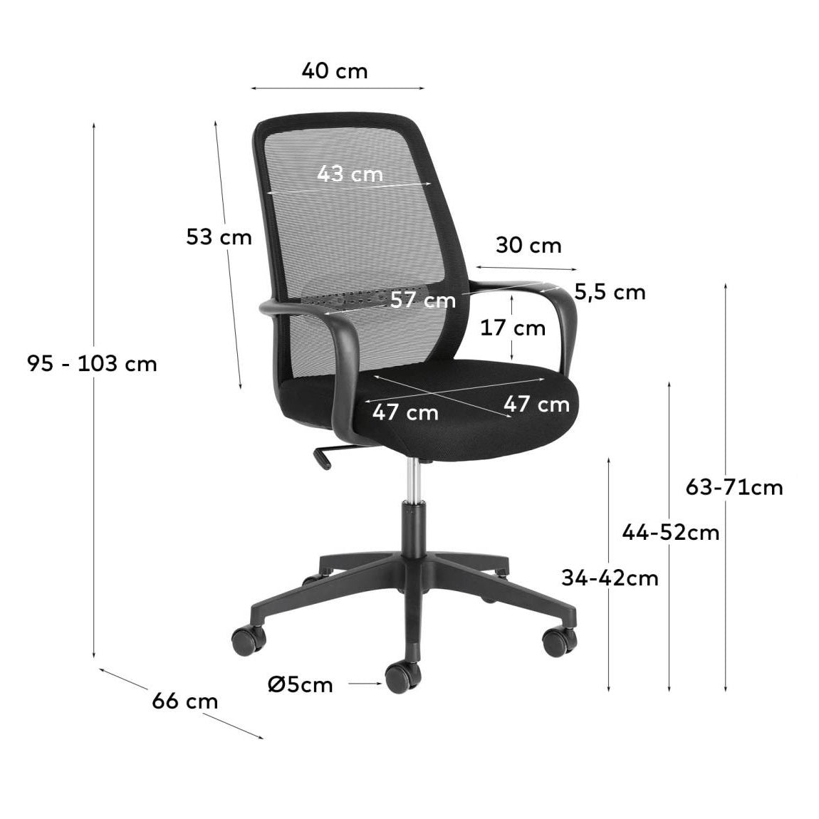 Melva black office chair with a black base