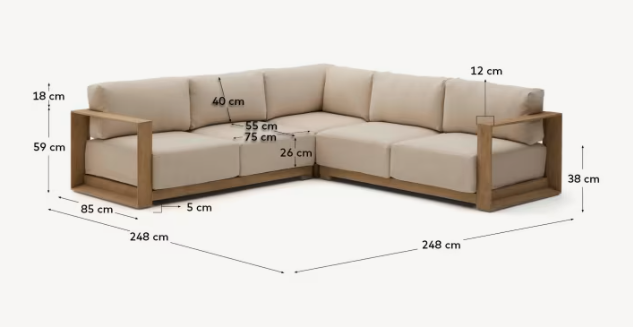Ambra external corner acacia wood with a creamy seat