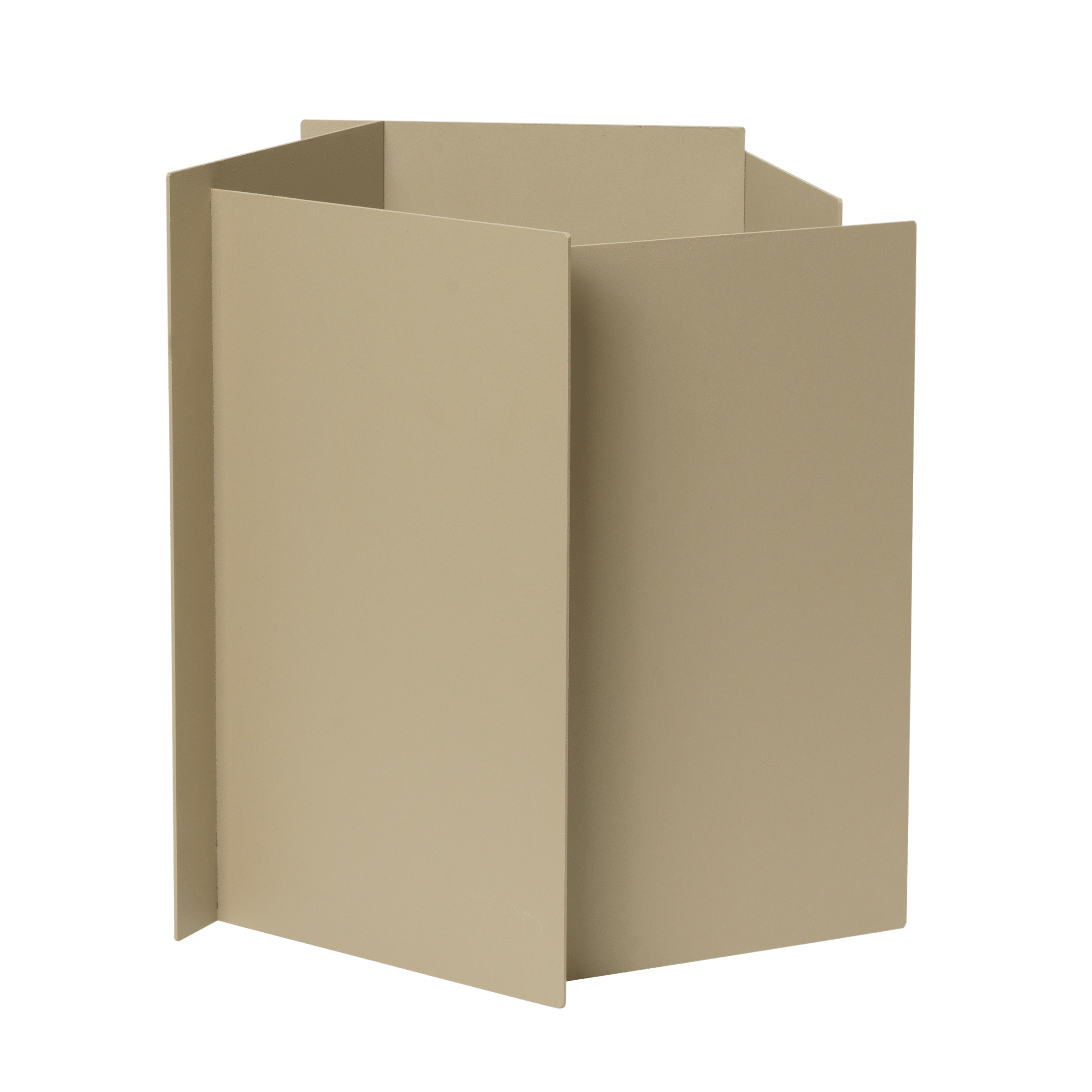 Fragma pot is a minimalist form with a sculptural character. Made of powder-coated stainless steel, it consists of five panels of varying heights that create a striking, geometric silhouette. The light beige shade adds elegance and lightness.