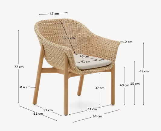 Chair Galea is a unique combination of elegant craft and modern durability. The construction of solid teak with FSC ™ certificate 100% not only emphasizes the natural beauty of the material, but also guarantees a sustainable and responsible forest management. The seat and support are made of hand -woven synthetic rattan, which imitates wicker, while maintaining high resistance to weather conditions and ease of care.